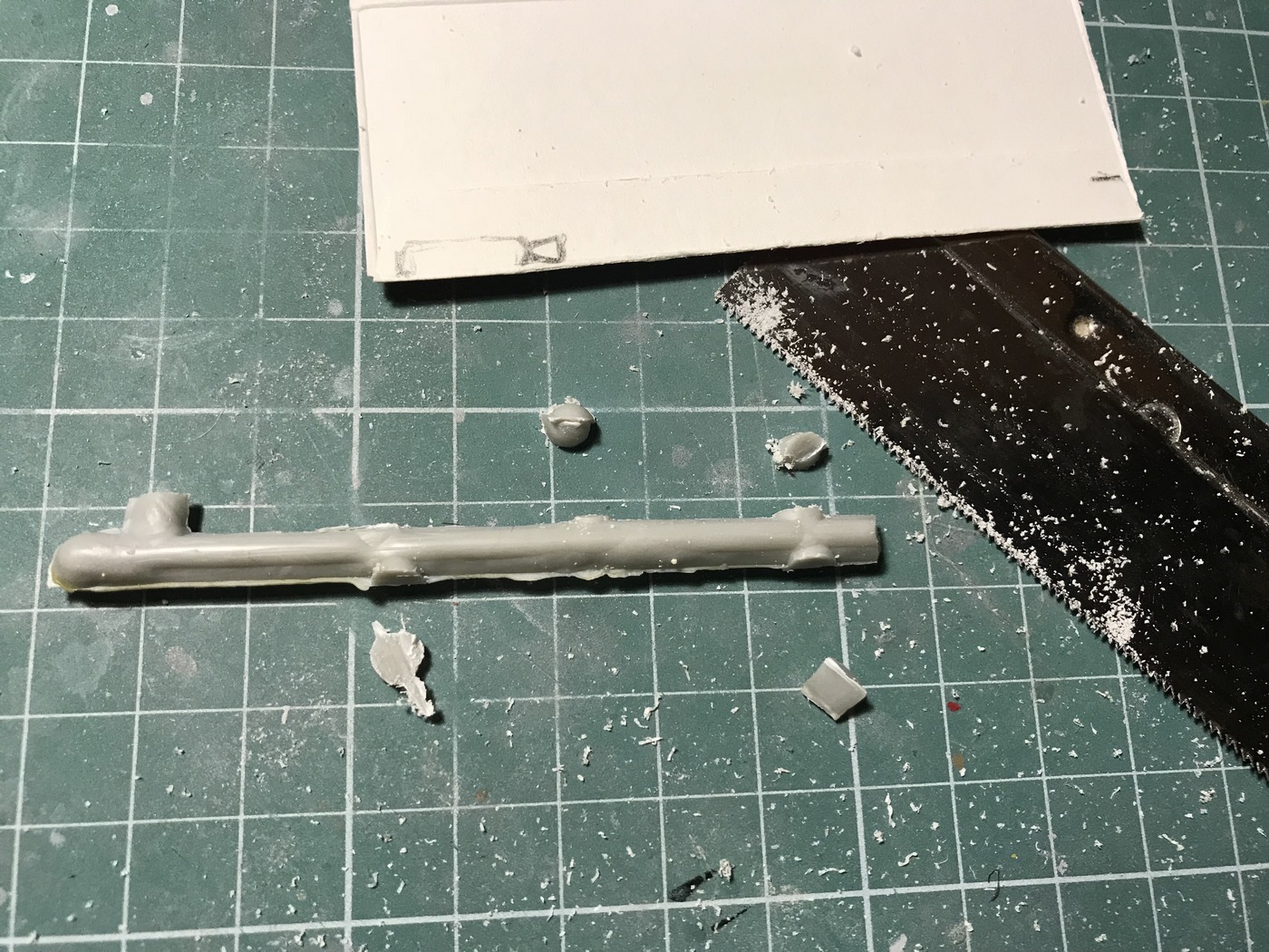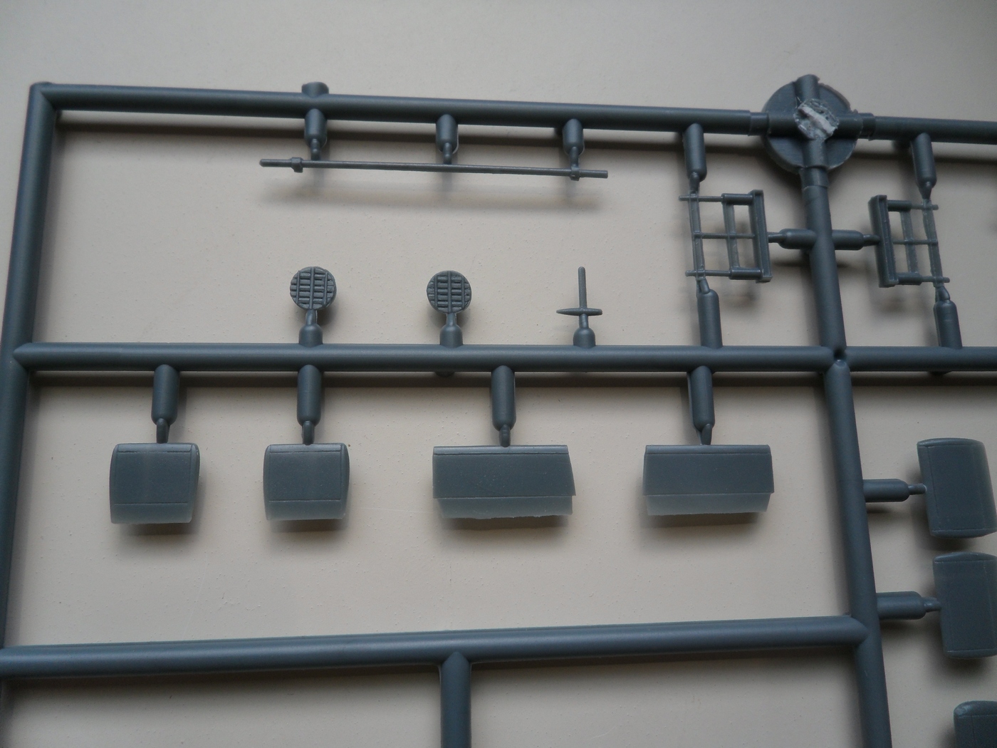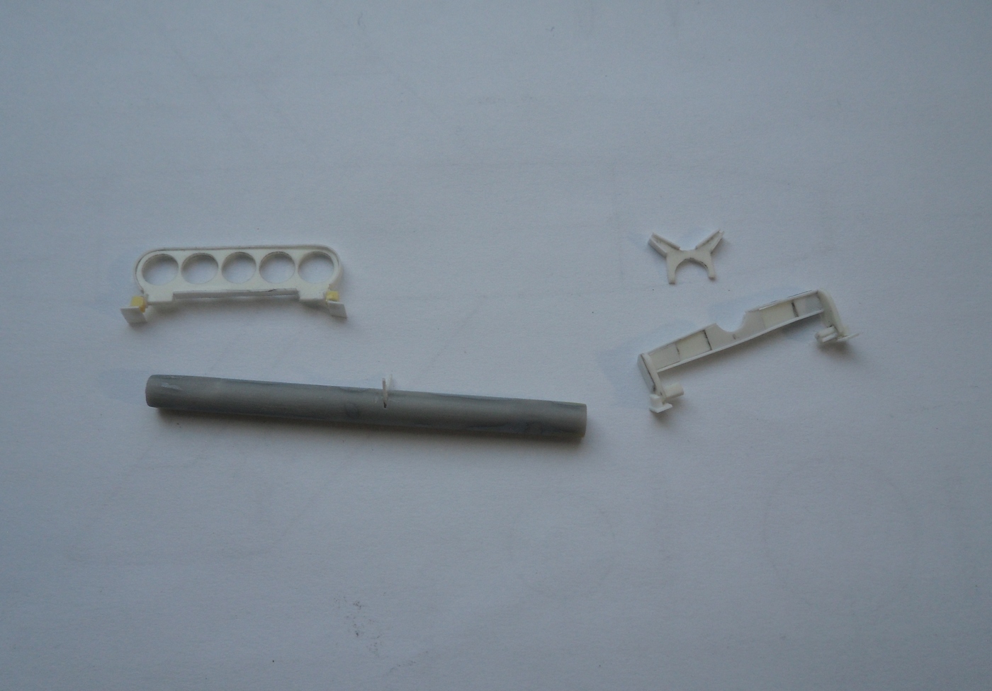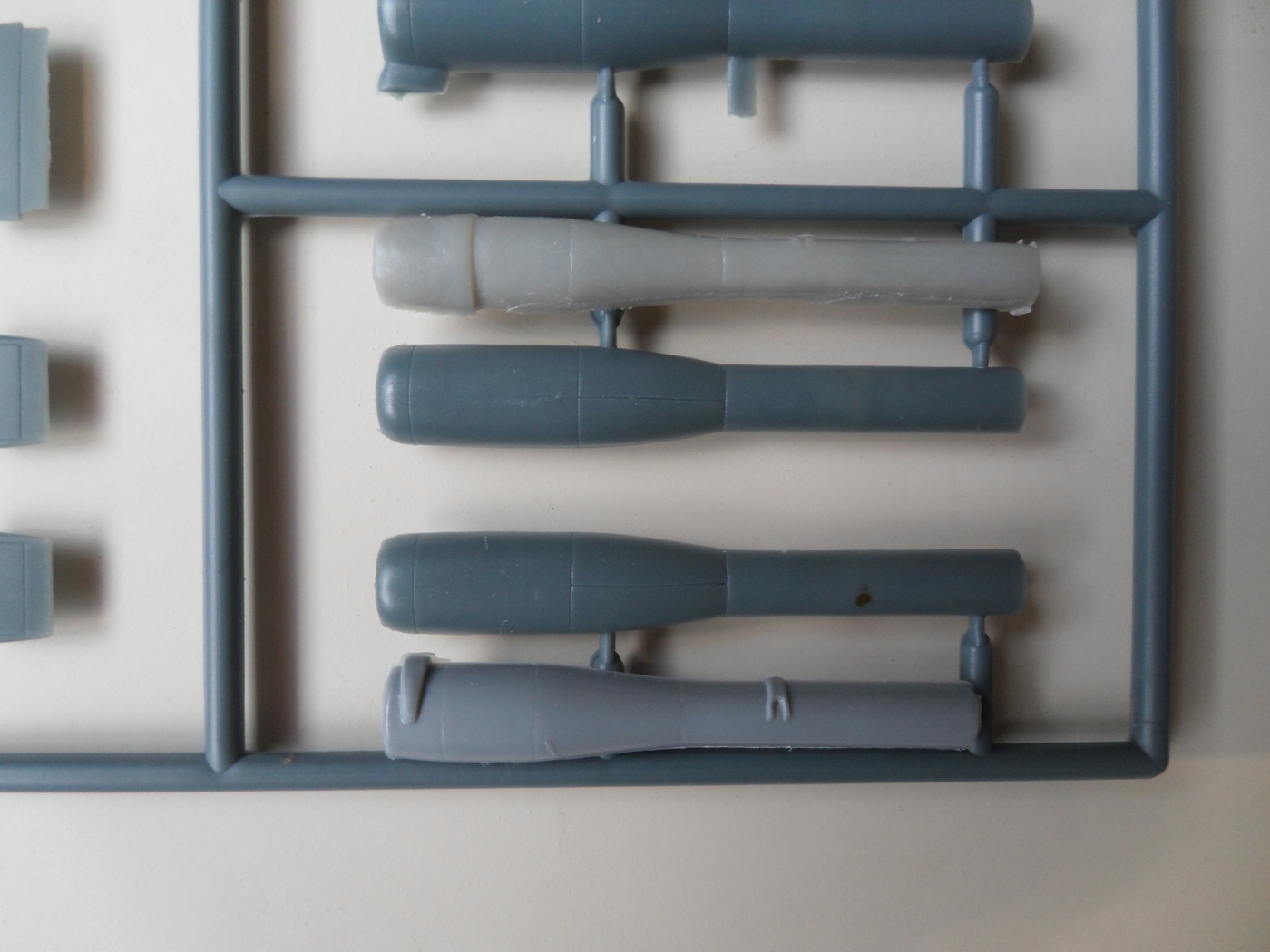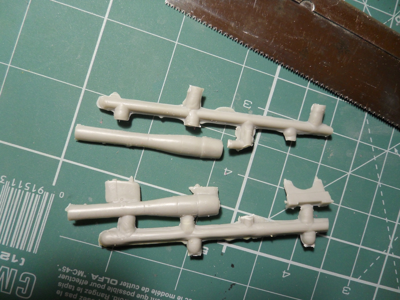 Детали с литников приходиться отпиливать, а не откусывать... Сейчас склеил корпус, сделал пропил, на поведенной половинке и распилил крылья...