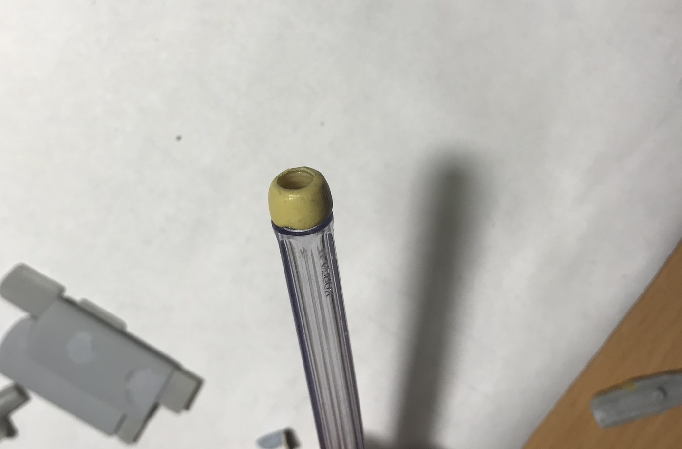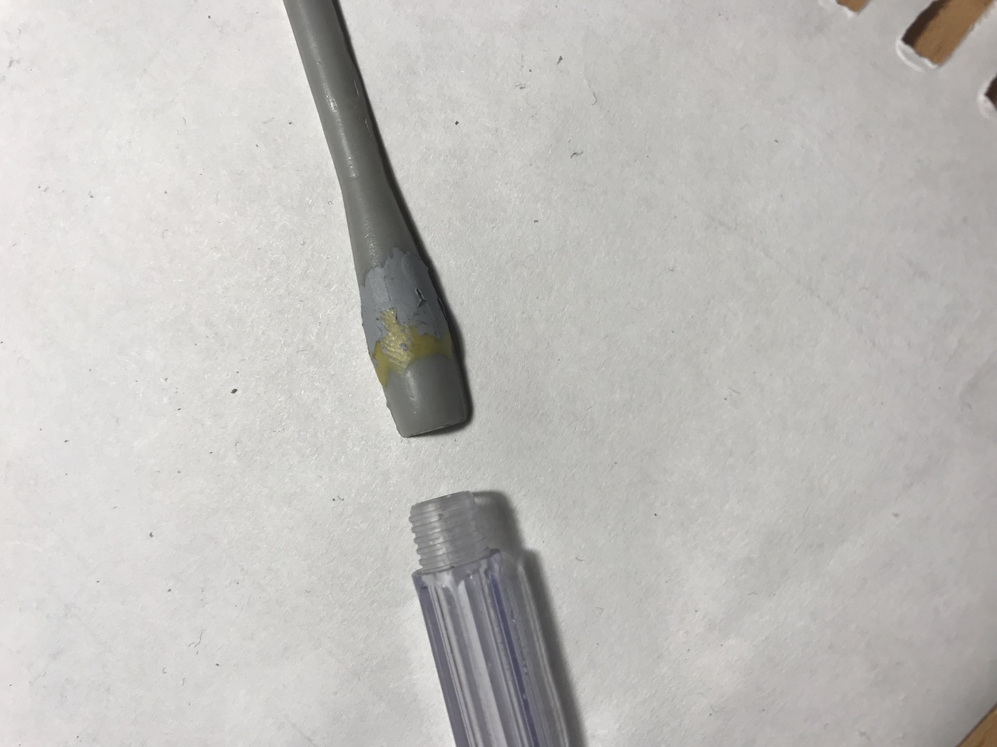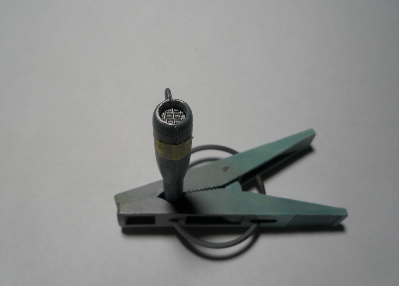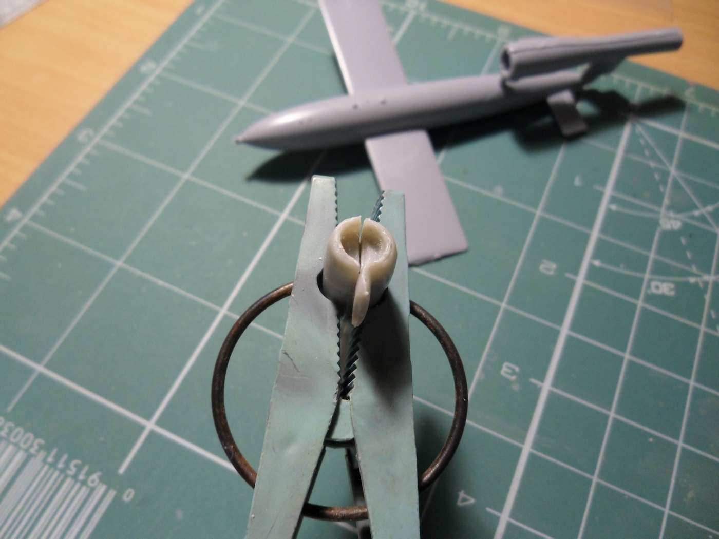 Решил переделать обечайку ВЗ: в наборе кромки не симметричны и в местах стыка, много возни... а доводить канал, с вклеенной решеткой(не знаю как называется эта штука на Аргусах), не совсем удобно. Взял ручку(резьбовая часть), с подходящим, внутренним диаметром, внешний вылепил двухкомпонентной Тамией...
