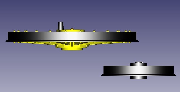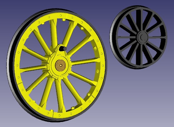 Теперь думаю, делать внутреннюю часть передних колёс из дерева(груша), а потом нанести тонировку желтой масляной краской или же напечатать эти колёса на 3D принтере?