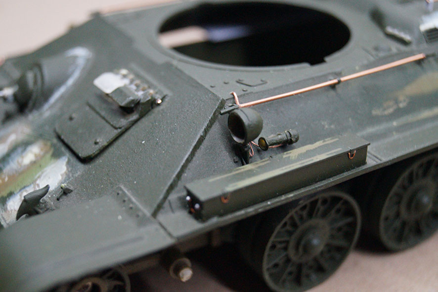Вы очень сумбурно пишите! ) Сначала не понял, почему в заголовке Т-34-76, а в первом посте речь о Т-34-85... Но может и я невнимательно читаю. Переделывая старую модель не обязательно менять все и вся на смолу и металл. То, что Вы сделали уже хорошо. Старая башня и так нормальна, Вы практически все сделали. Фара...фары может и не быть! ) Катки...но это в идеале. А так у Вас получается хороший передел. Удачи в покраске.