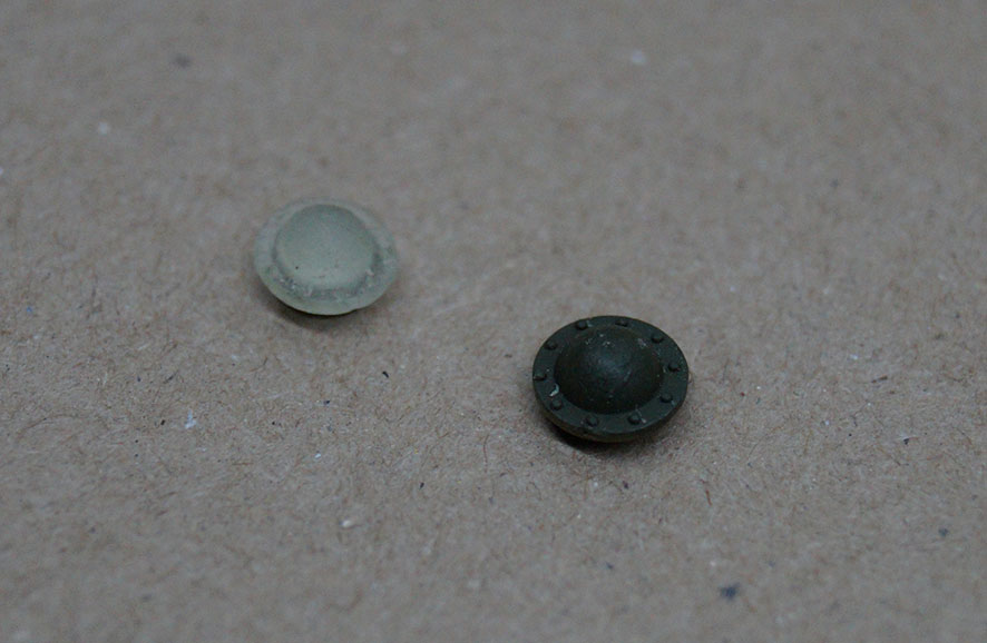 сразу столкнулся с трудностями: нет нужных деталей - безвозвратно утрачены, поэтому ресничку, люк, и колпак ленивца пришлось отлить из эпоксиндки в пластилин