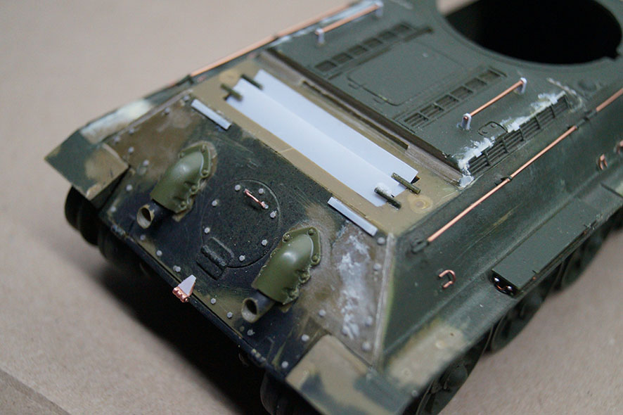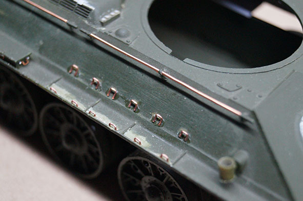 немного доработал башню, монтажные кольца: 2 самодел (витая пара), 2 от т-35 от звезды остались, добавил пару заклепок (7).
