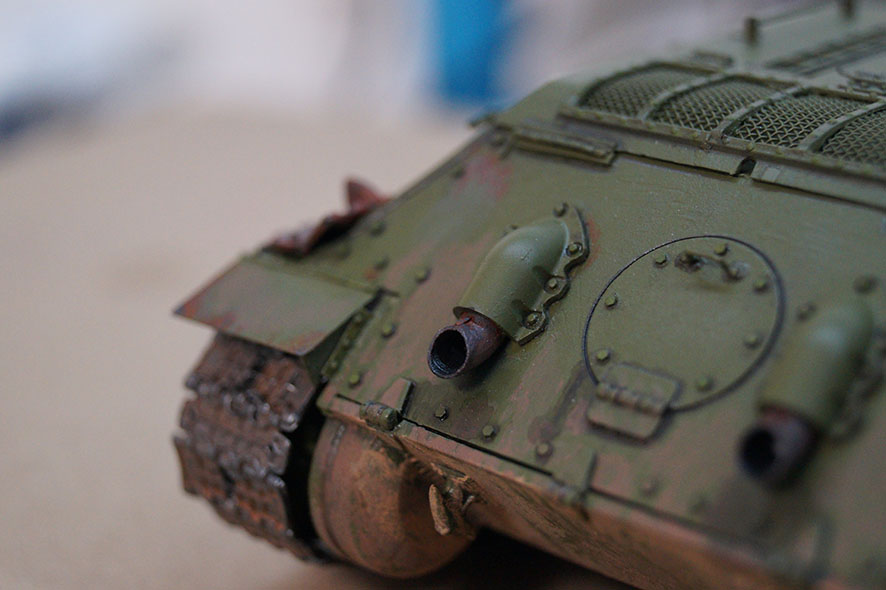 Дело хозяйское, конечно, но старую краску следовало бы убрать. "Крот" сдирает все. И да - это не Т-34-85...) И разве в 95-96 гг. уже была краска Mr.Color?! ) Старанее впечатляет, но если оставите катки от Звезды, то все остальное просто бессмысленно.