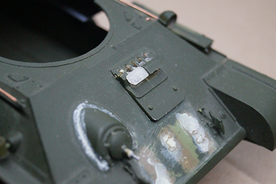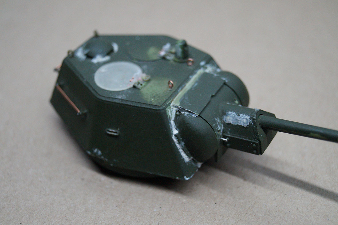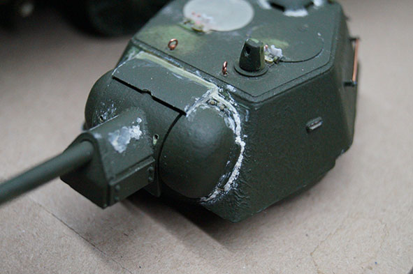 ремонт занял 2 недели, завтра попробую выйти на покраску (тонко задую) поверх 4БО MrColor, а то глаз замылился перестал уже видеть огрехи. ДА забыл на башне сделал все смотровые отверстия заменил оба пулемета на иглы 0.6мм, под реснички вставил DVD. Пока как то так