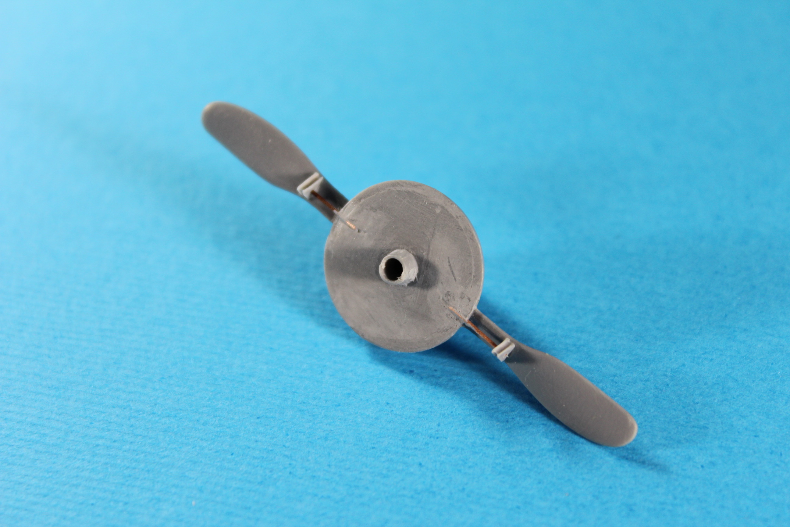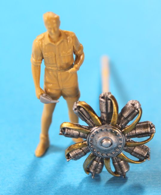 До доработал винт, на фото которое любезно предоставил Александр видны прутки фиксирующие треугольники предохраняющие винт от разрушения пулями, извините за тавтологию выпущенные из пулемета. В наборе есть деталь из фототравления, я ее не использовал и сделал эти прутки из проволоки, т.к. травление плоское, и круглая в сечении проволока по моему будет лучше смотреться.