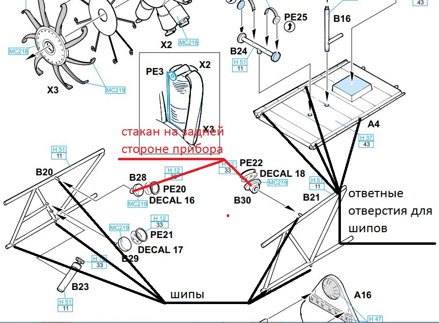 Я тем временем слегка отвлекся от модели смотря на Ютубе Гоблина и Клима Жукова, но теперь снова возвращаюсь к Морану. собрал кокпит и надо сказать был приятно удивлен наличием в деталях шипов и ответных отверстий, которые не позволят промахнуться при сборке модели. Три прибора "будильника" на задней стороне имеют стаканы позиционирующиеся в соответствующие шипы, это позволяет сориентировать прибор в нужном положении, задав ему требуемые углы наклона.