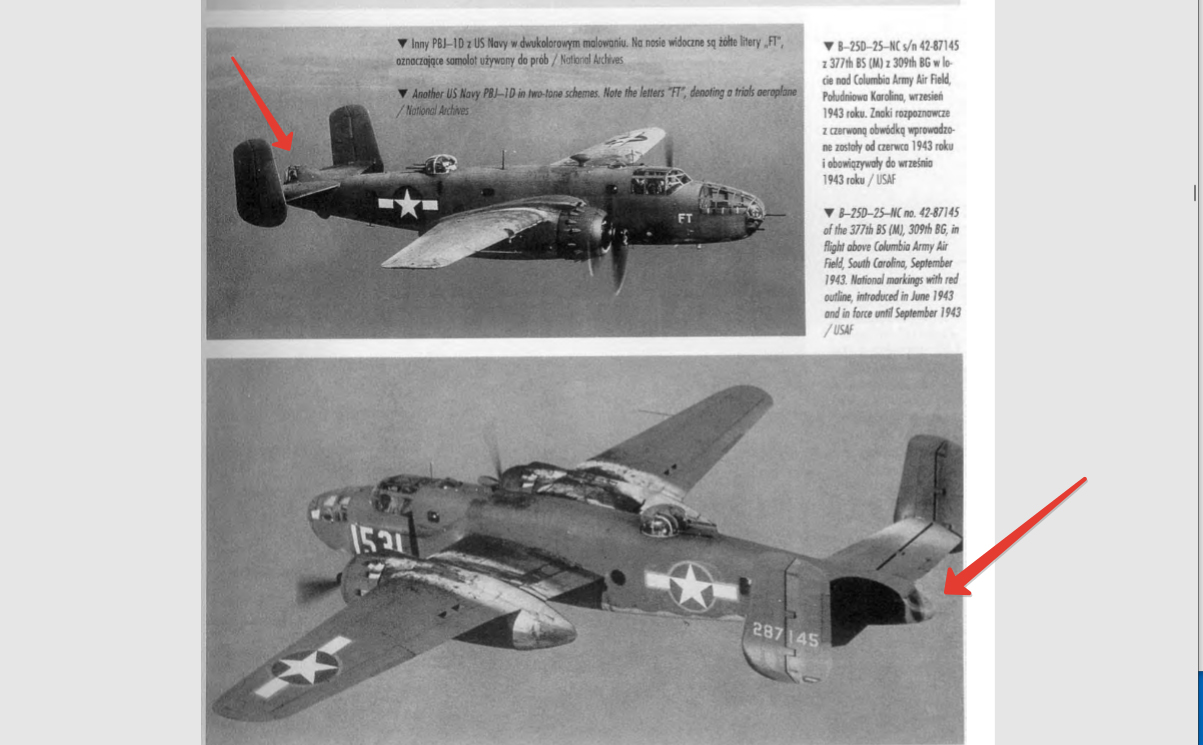 По кабине хвостового стрелка. Обрез задней части точно отличается от модификации J. По самой кабине надо смотреть. Но тут есть еще один нюанс. В чешской книжке про Митчеллы приводятся фото модификации D и ее аналога для морской пехоты. Так вот они друг от друга отличаются как раз наличием/отсутствием хвостовой установки.