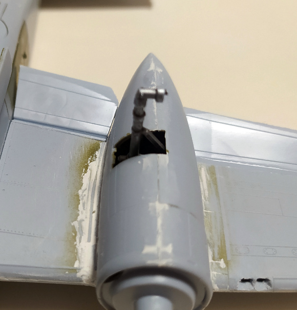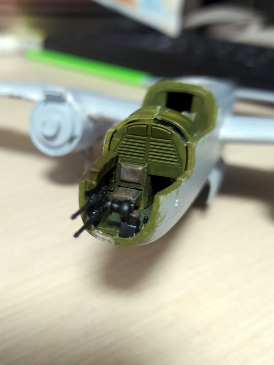 Всем доброго времени суток. За столь долгое отсутствие сделано было не очень много. В кабину хвостового стрелка добавлена система управления пулеметом. Почти суслик. Приклеил крылья. Далее, установил мотогондолы. Зазоры, конечно, удивили. Тамиевская белая шпакля + шлифовка - наше всё. Перед этим окрасил и вклеил стойки шасси. Поработал с кабиной бомбардира. Установил спарку курсовых пулеметов и остальные прибамбасы. Сейчас предстоит самое сложное - подгонять, высверливать отверстия под курсовые пулемёты в носовой секции остекления.