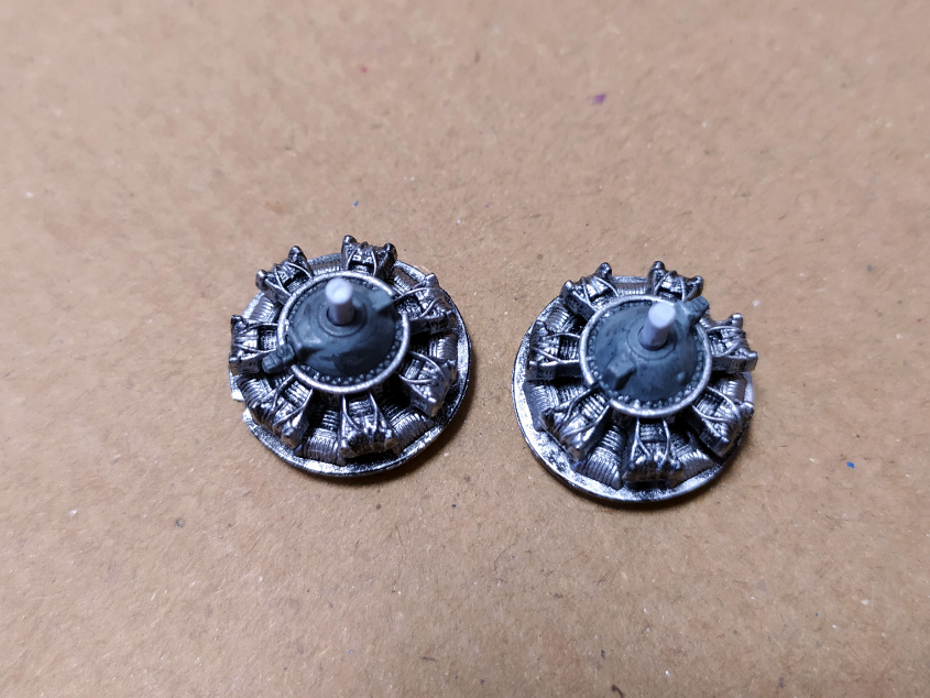 И снова здравствуйте! Продолжаю работу над самолетом. Нарастил спинку кресла второго пилота. Сточил кромки обеих кресел. Утрамбовал еще свинца в переднюю нишу шасси. Соединил половинки фюзеляжа. Пробовал выдавливать фонарь кормового стрелка на пуансоне. Ничего не получилось. Нашел подходящий фонарь от тамиевского Мустанга. Доработал доширакопластом, фольгированным скотчем. Вырезал кабину стрелка. Установил там табуретку. В итоге табуретка - суслик, еле проглядывается. Решил заняться курсовыми пулеметами в кабине бомбардира, поэтому приготовил все пулеметы, а заодно и собрал-окрасил движки.