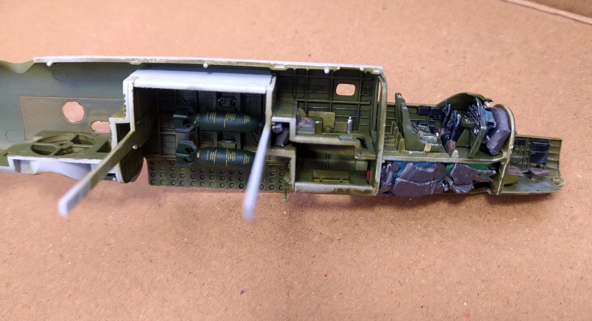 Я правильно понимаю, что черной должна быть панель между лобовым стеклом и приборной доской? Если так, то исправить 5 секунд. "Часы" на эту же панель, прибор сброса бомб и пару ящиков под кресло бомбардира тоже еще не поздно присобачить. Займусь этим. Бронеспинки пилотов - тоже не проблема. Вот с бронеспинкой бомбардира - там уже если только доширакопластом наращивать уже имеющуюся спинку и красить в черный цвет. И я не знаю, как она вообще выглядит. По образцу со спинками пилотов?