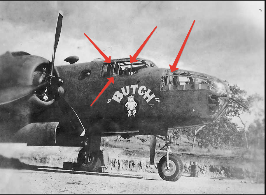 Нашел интересное фото. На нем виден краешек спинки кресла правого пилота и установленные бронеспинки как у пилотов, так и у бомбардира.