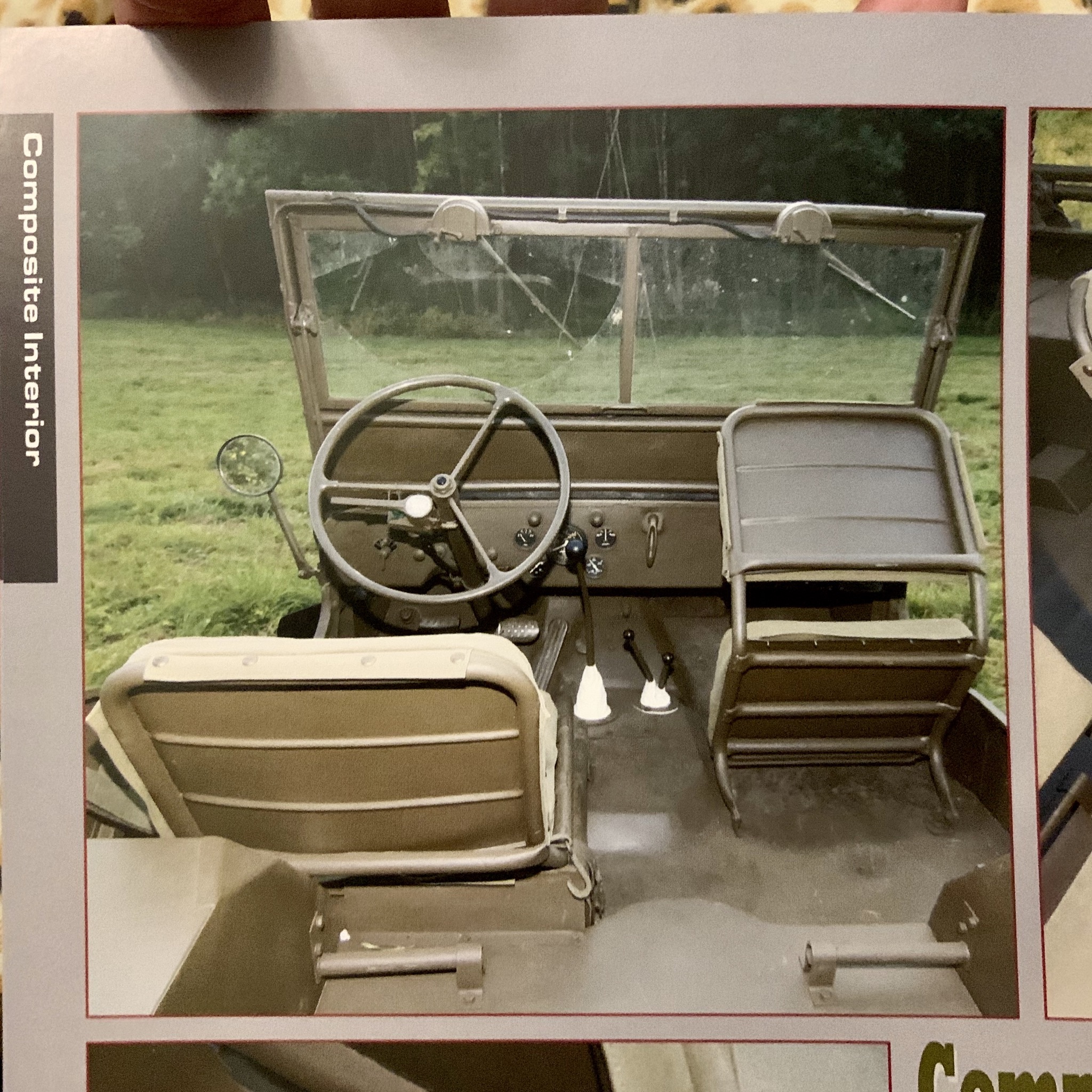 Обнаружил расхождения в изображениях: где-то установку вертикальной опоры под станковый пулемёт Браунинга в кузове джипа показывают по продольной оси машины, но в ряде случаев похоже, что она смещена к правому (пассажирскому) сиденью. "Тамия" в своей старой модели (35015) также даёт отверстие под установку опоры со смещением вправо. Возникли у меня смутные подозрения, что М1919 устанавливали по центру, а 0,50 - со смещением.