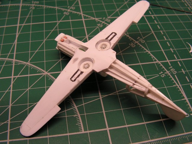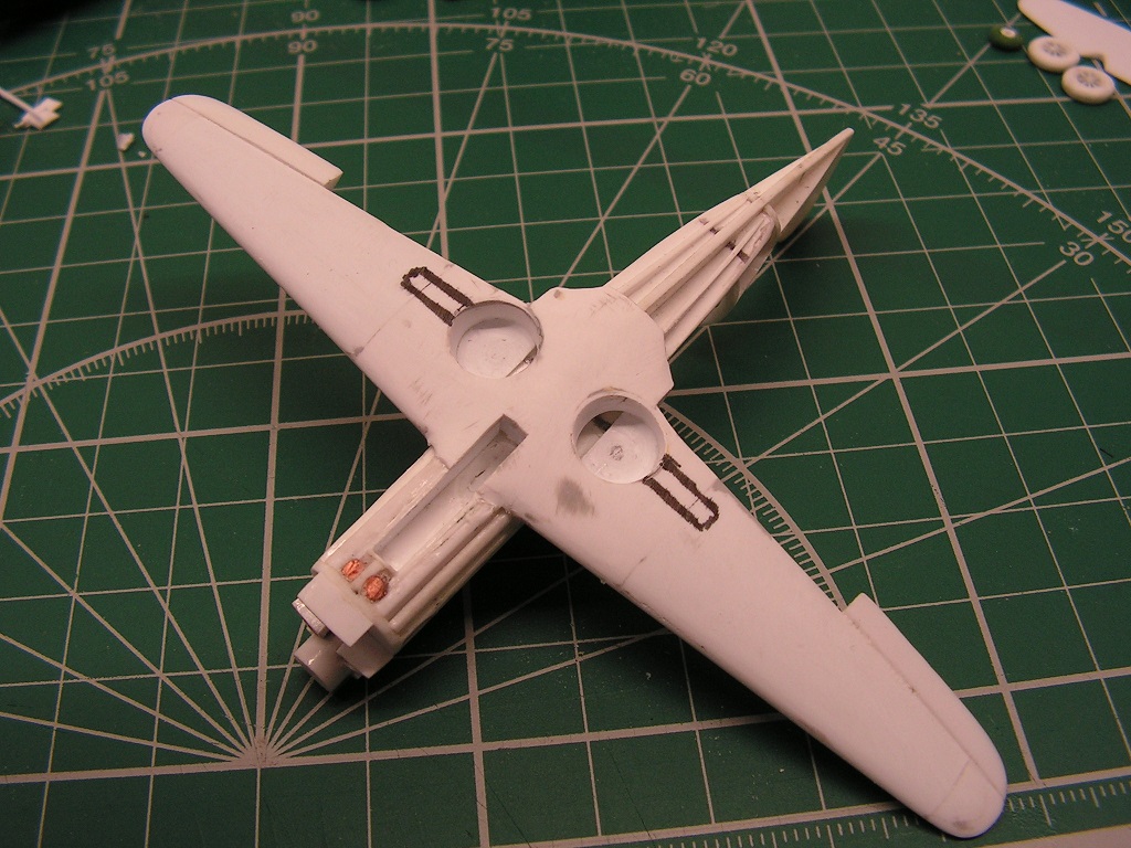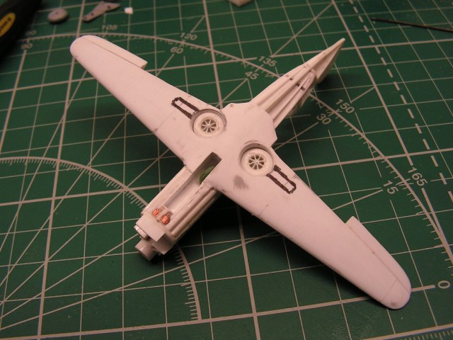 Заодно еще раз убедился что имеющимися проекциями нужно пользоваться с большой осторожностью - там например указаны внутренние створки шасси, которые не подтверждаются вообще ни одной фотографией, да и там где можно разглядеть видно что внутренних частей створок шасси не было, а форма ниш шасси - именно круглая, что не получается в случае, если следовать проекциям...