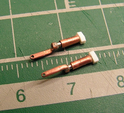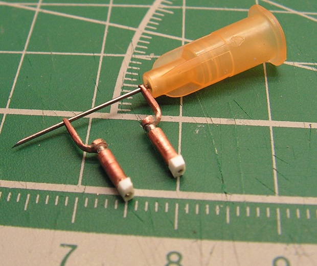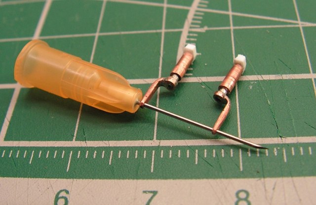 Основные стойки шасси. Оси колес пока не вклеены, осями будет игла 0.5 мм, на которую сейчас как раз надеты стойки.