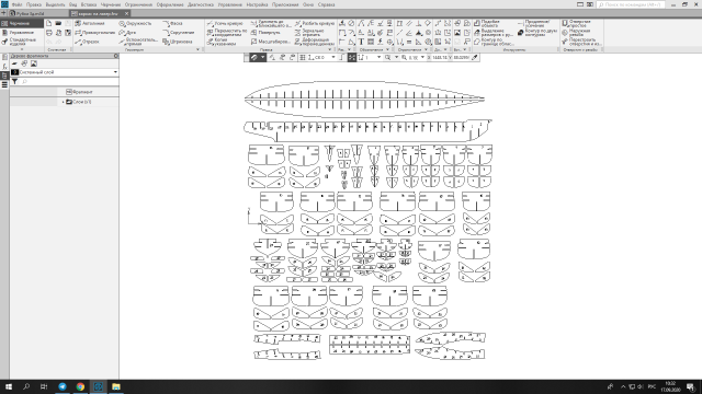 Решился на постройку этого сложного проекта. За основу корпуса взята "Парижская коммуна" от журнала "Бумажное моделирование". Переделана носовая часть, и шпангоуты выполнены в полную высоту. Все было прорисовано в программе "3Д КОМПАС", переведено в "Corel draw" и отправлено вместе с переплетным картоном 2мм на лазерную резку.