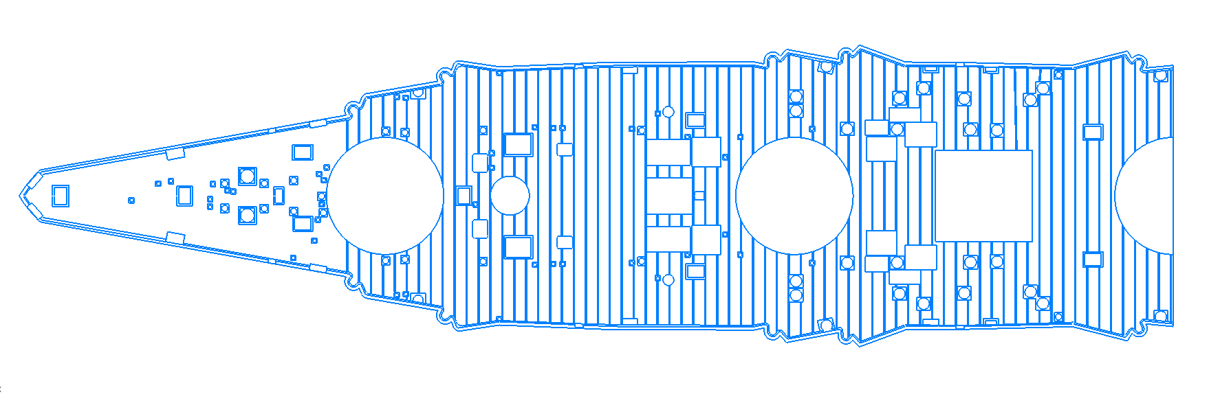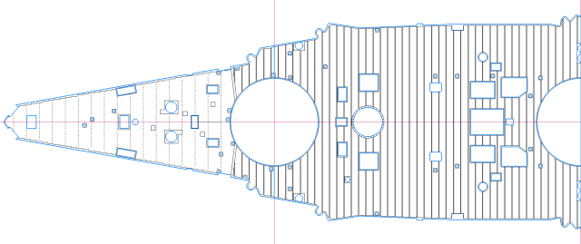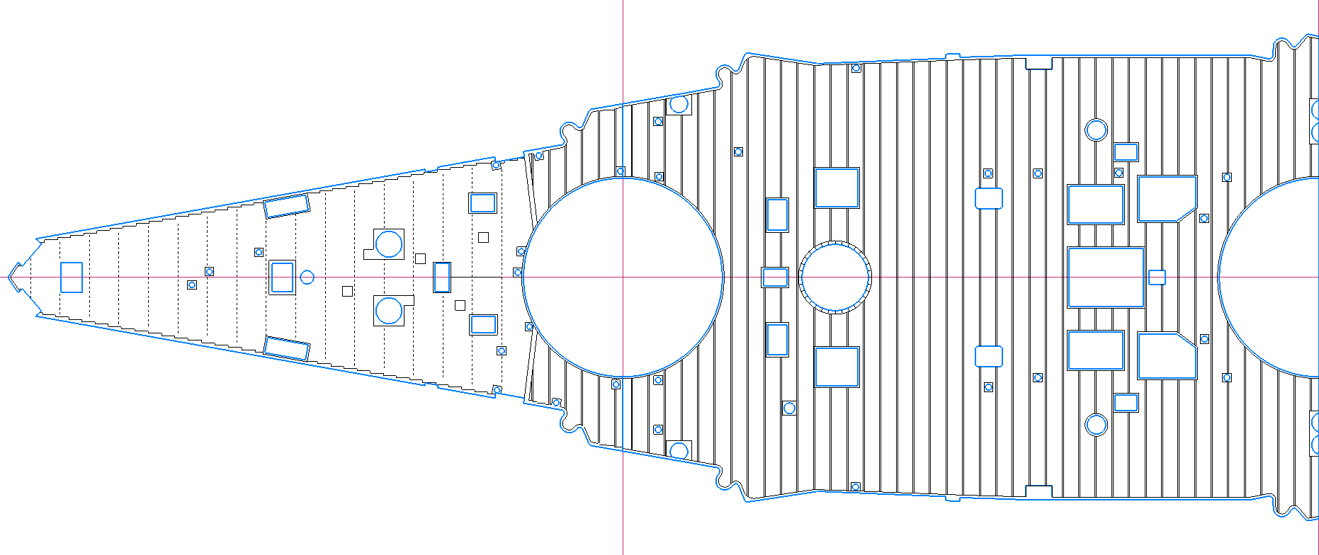 Осталось прорисовать раскладку палубных досок на баке и на кормовых срезах.