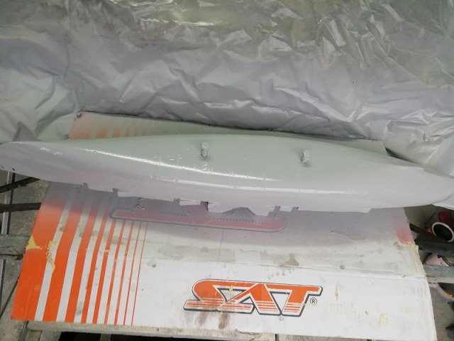 Корпус зашпаклеван! идут доводочные работы. Шпатлевка автомобильная, слой первый универсалкой, расход 0.5 кг, потом финишной 100г подшпаклевал, затем выравниваю жидкой шпатлевкой, нанесенной воздухом.