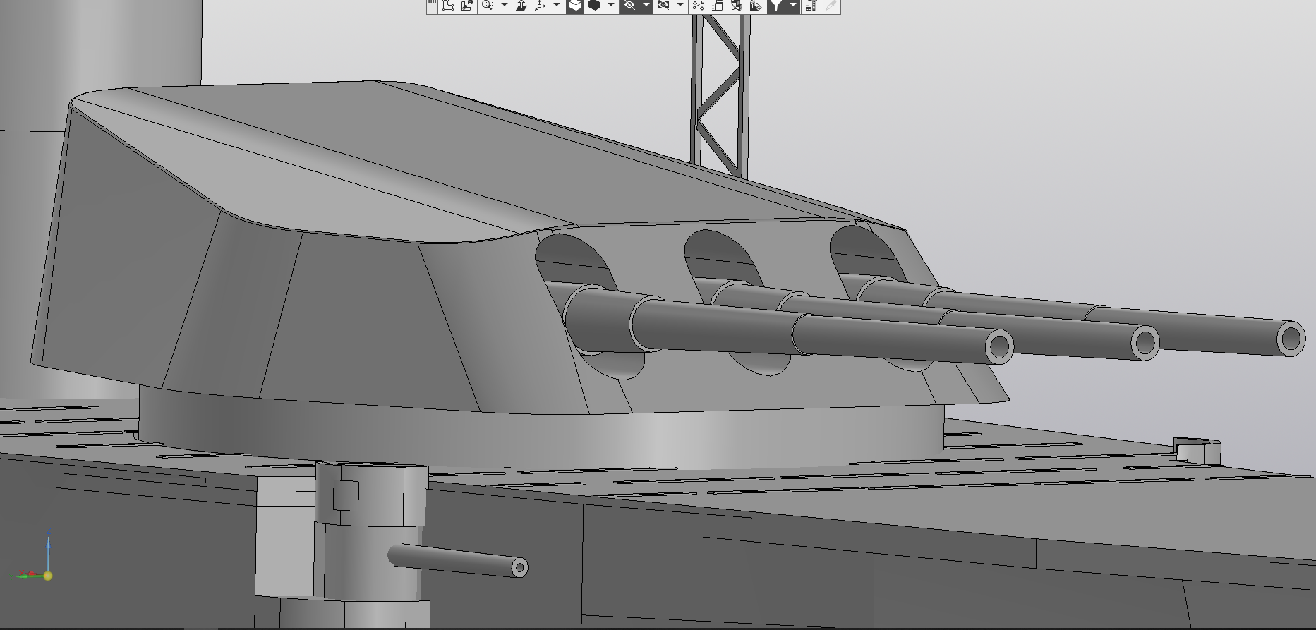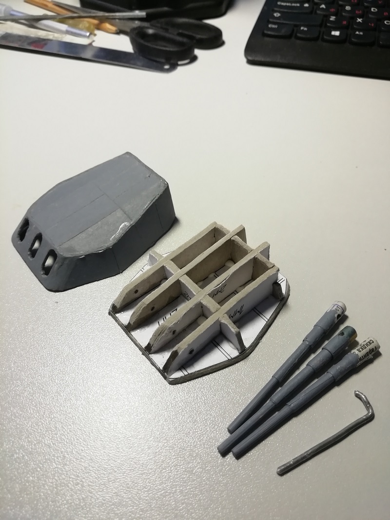 Ну и собрал пробную сборку башни ГК. Это пока МАКЕТ! Интересует мнение о форме, похоже или что то подправить надо?