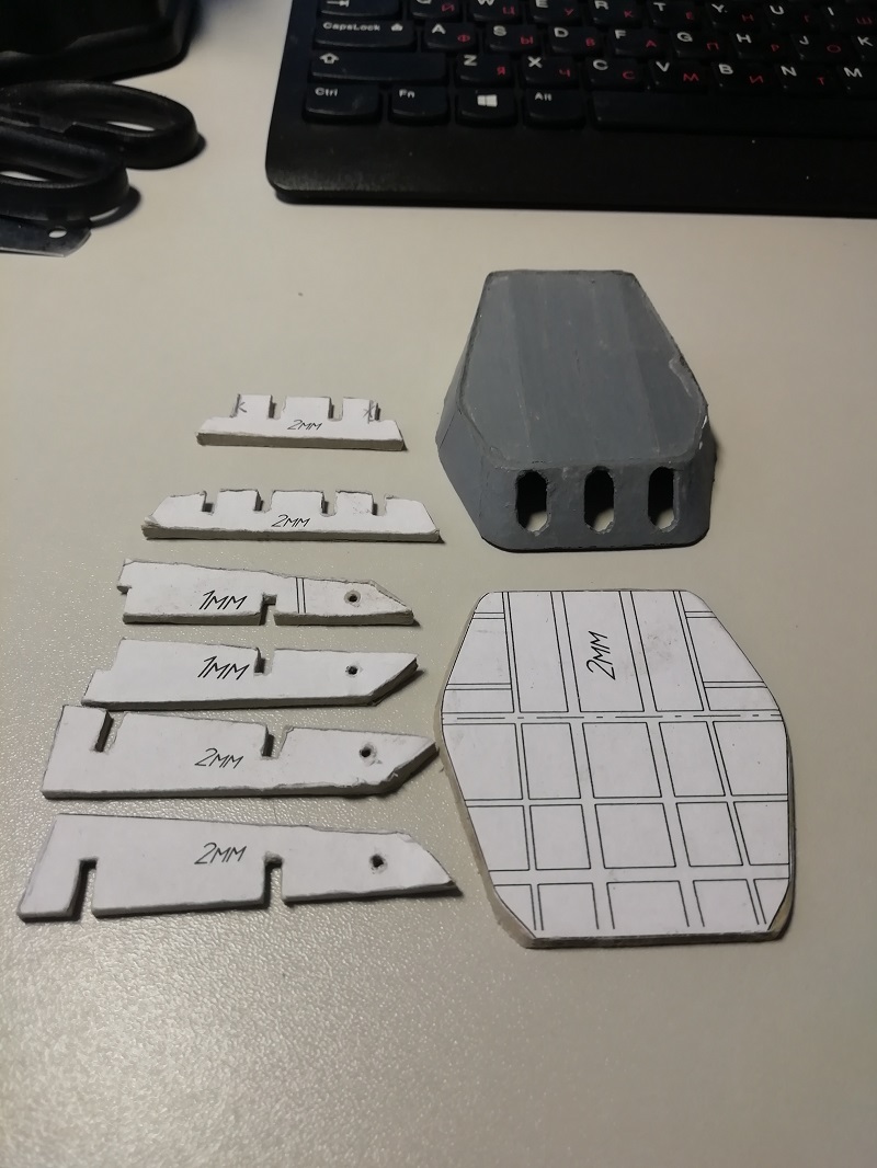 Попробую имитировать реальную расшивку броневых листов, с учетом этого и разработал, материал пока картон переплетный 1мм и 2мм.
