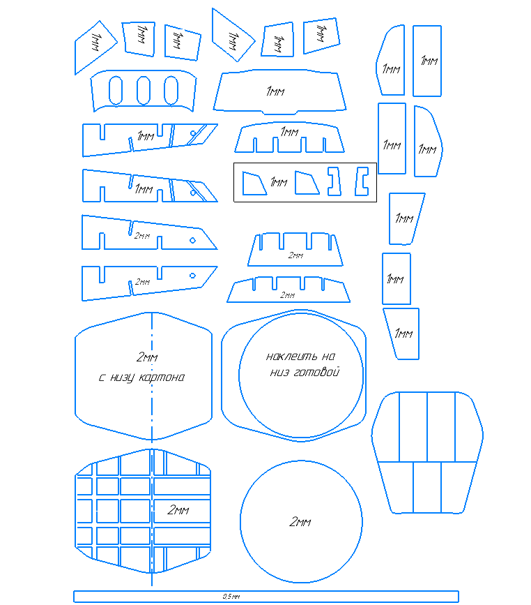 На задней части нарисовал стыки досок, как на палубе "Парижанки" от БМ. Пока не знаю сможет ли лазер это сделать и будет ли это видно.