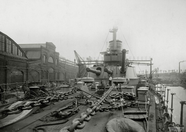 На фото - носовая часть дредноута, в районе 8-14 шпангоутов.