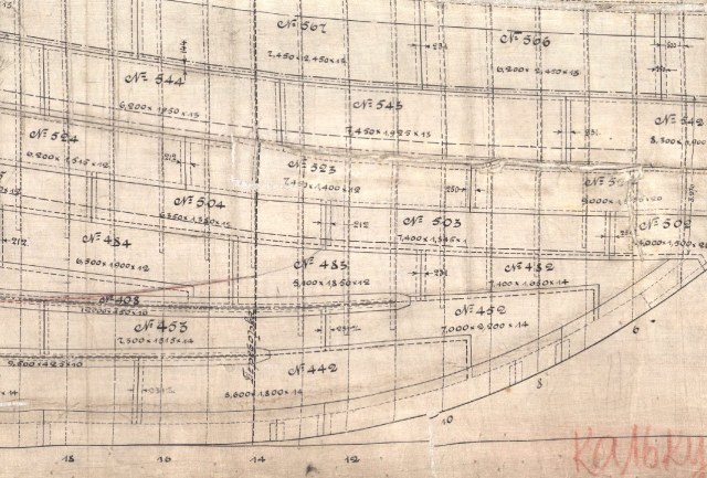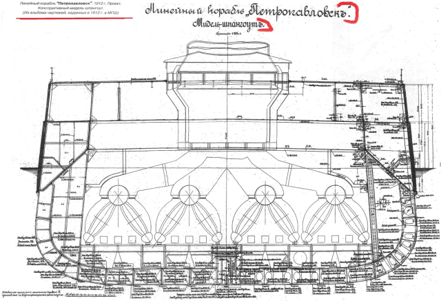 Вот есть чертеж мидель шпангоута "Петропавловска" , в неплохом качестве, но на нем все равно не видно надписей.