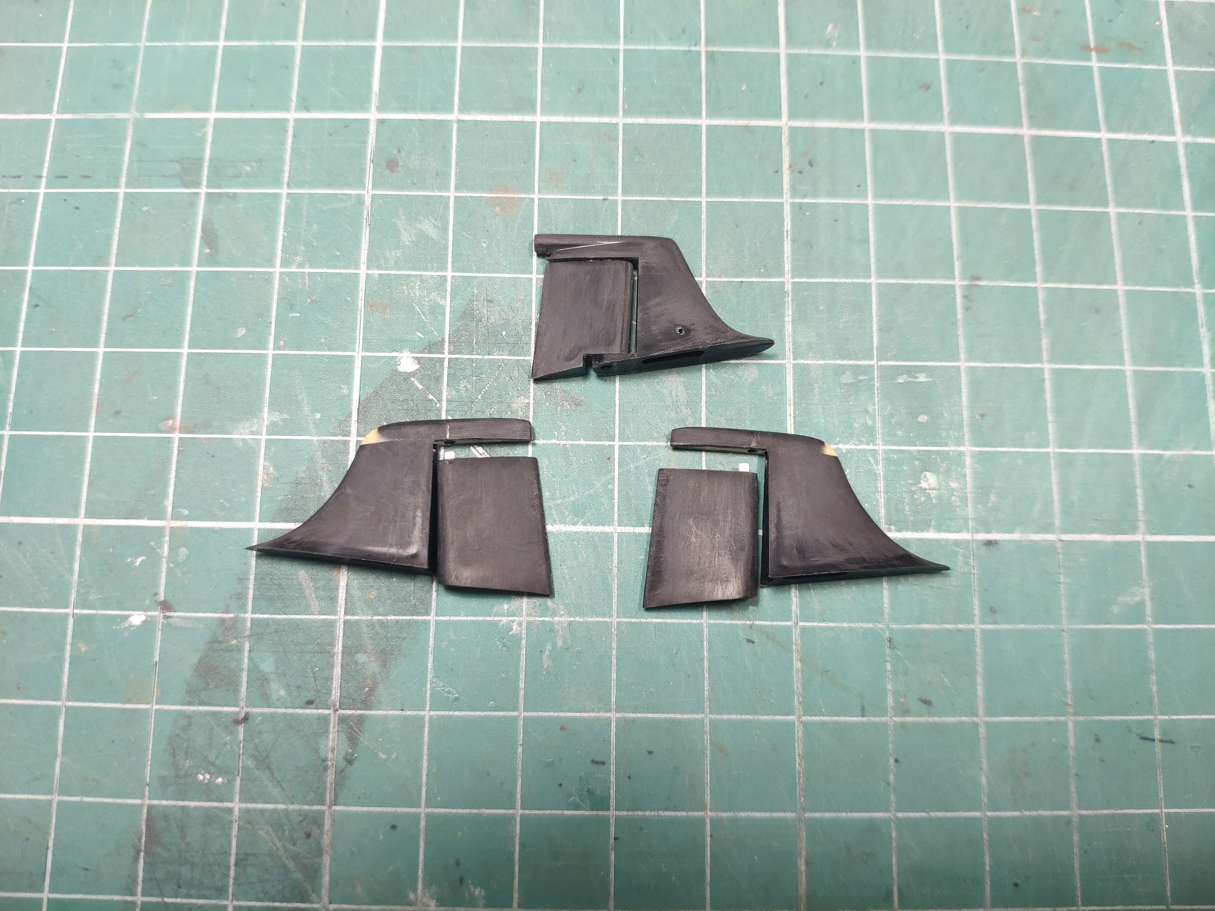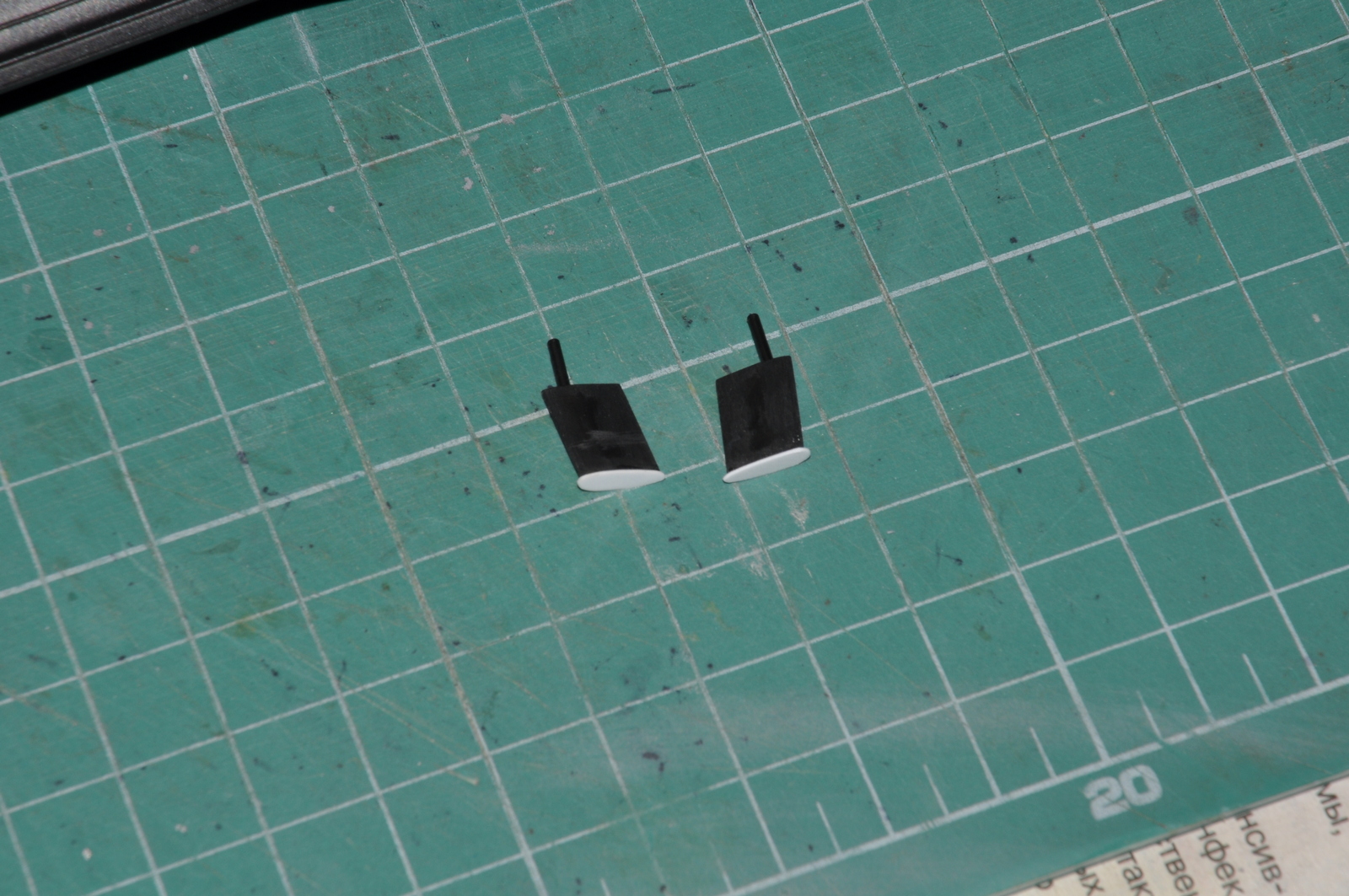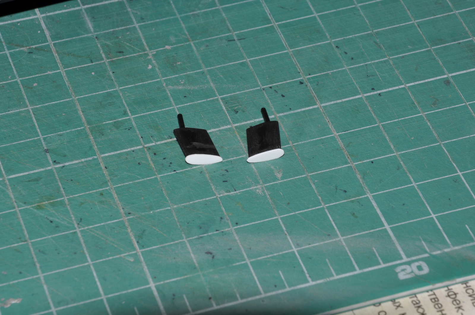 Итак, сделал отверстия - шпигаты, также на торцы носовых горизонтальных рулей сделал шайбы из пластика 0,25 мм.