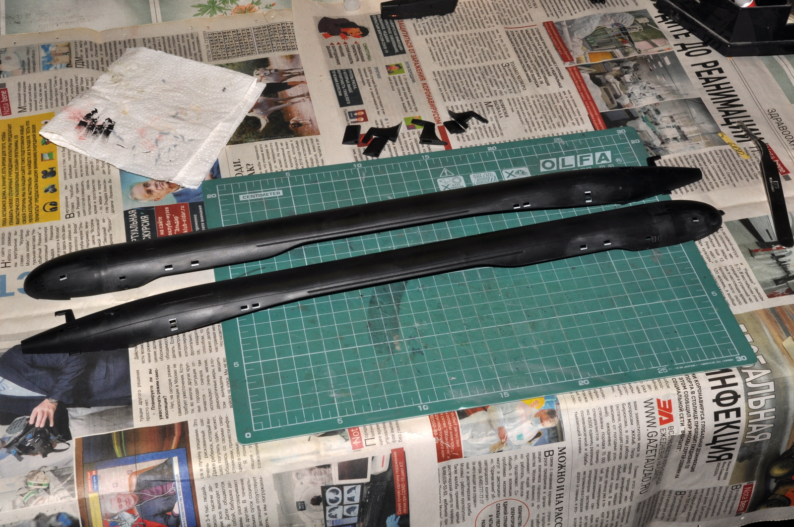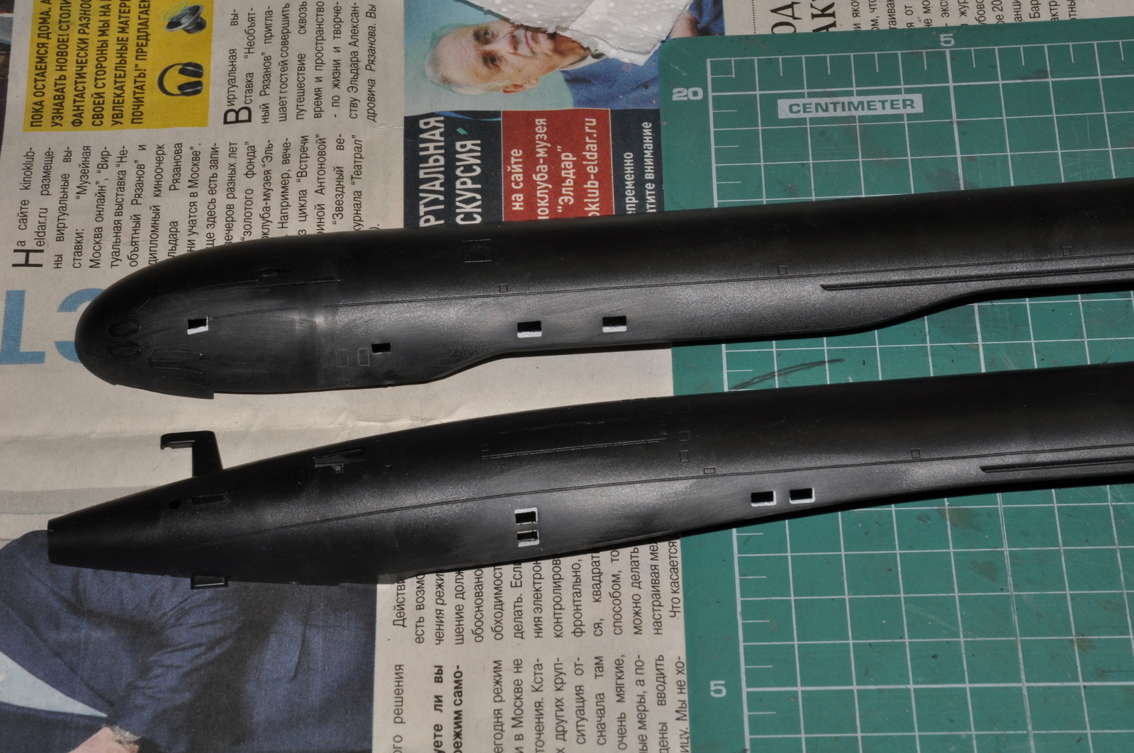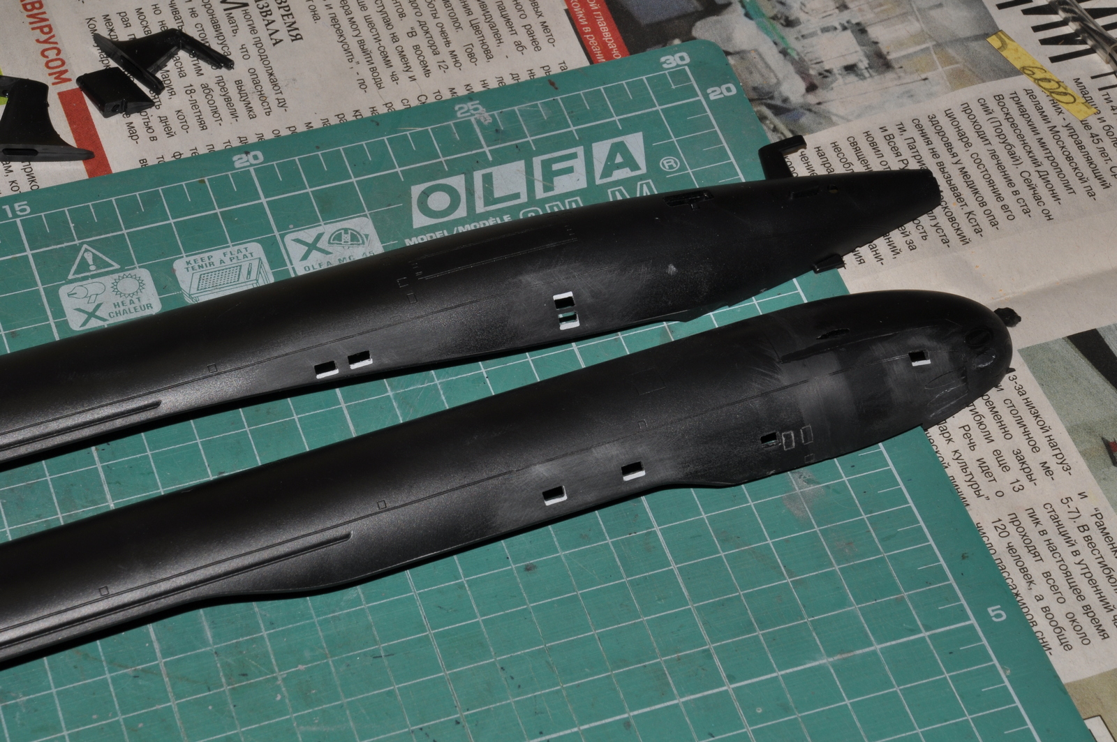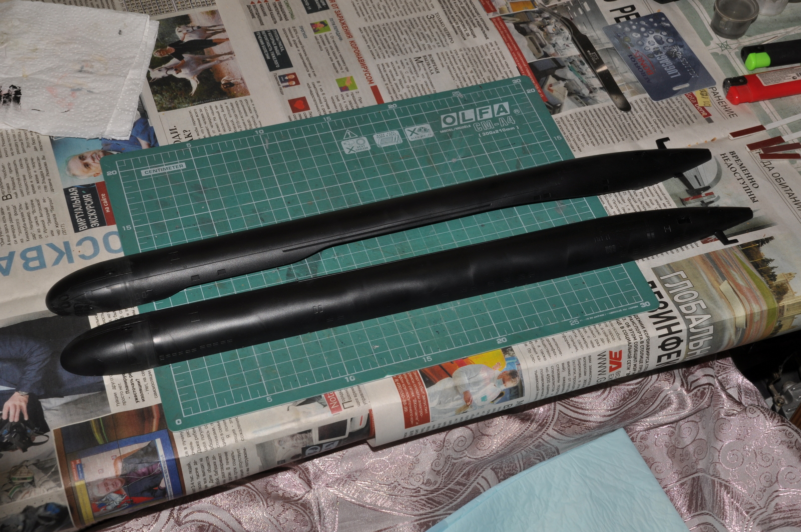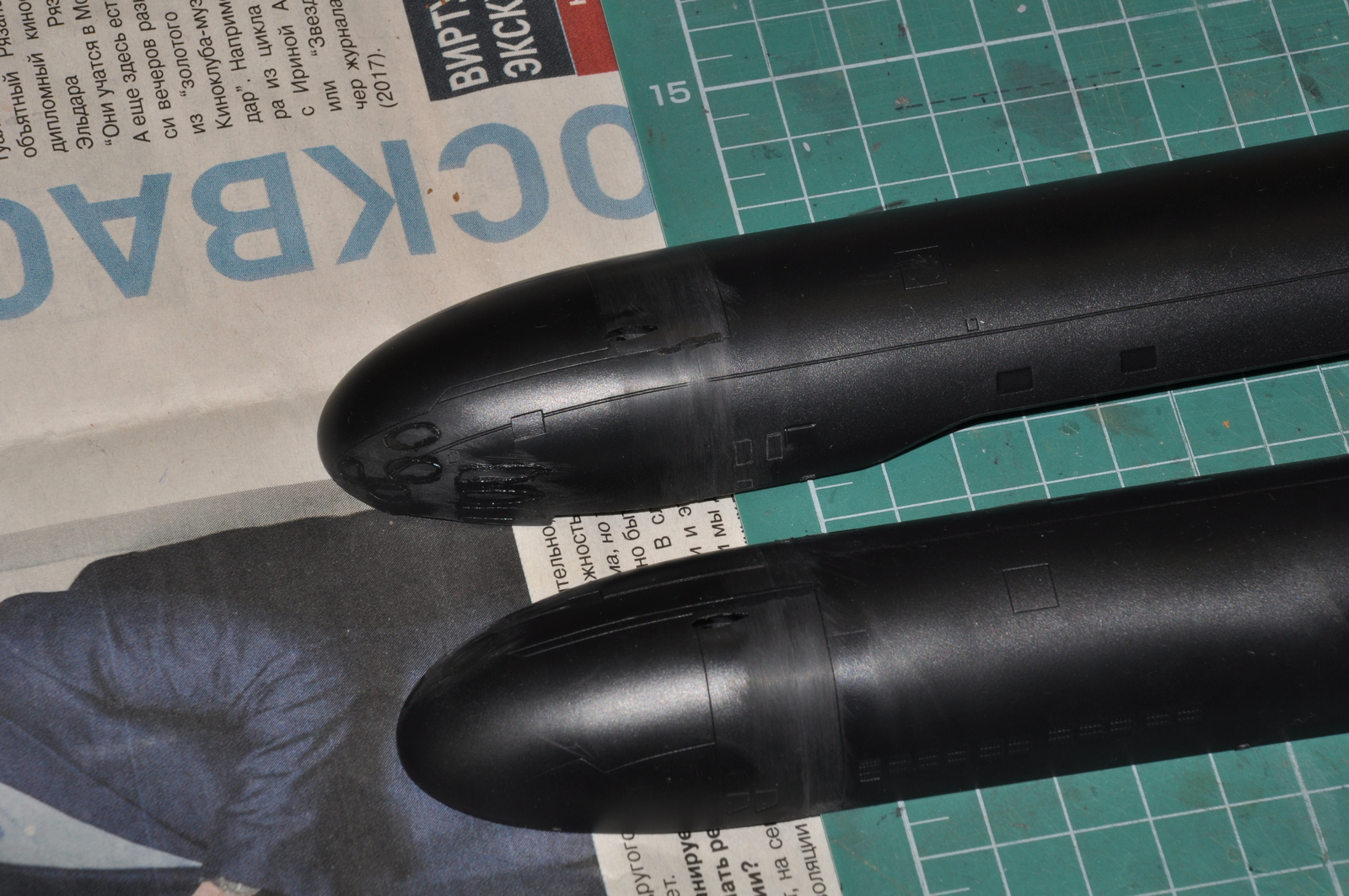 Молодец, Игорь!На стыках деталей,конечно еще видна шагрень на пластике. Он очень странный, достаточно быстро нагревается при шлифовке. У меня время строителсьтва К-19,местами даже плавился.