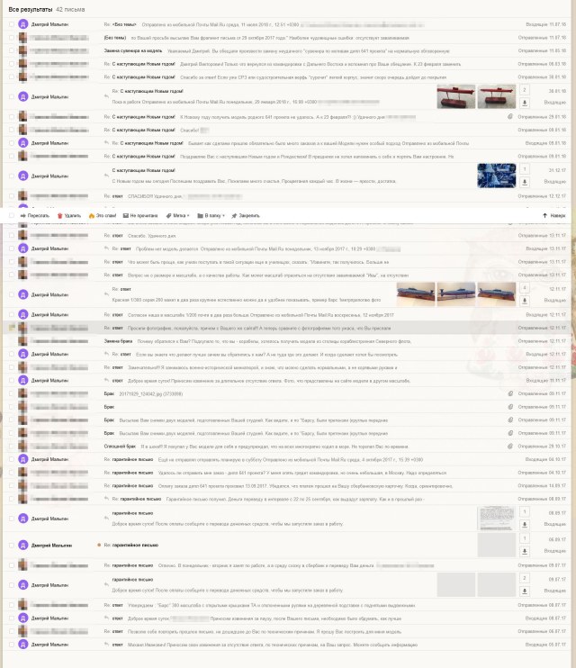 Рекомендую не смотреть на картинки, размещенные на сайте https://seamodels.tiu.ru или «Вконтакте» или «Ярмарке мастеров». То, что вы получите, будет разительно отличаться в худшую сторону от фотографий. Причем, сколько бы вы не заплатили, результат будет тот же. Сразу предупреждал Дмитрия Малыгина, что выбор масштаба определялся для меня не ценой, а размерами модели, и что за более высокое качество я готов дополнительно заплатить.