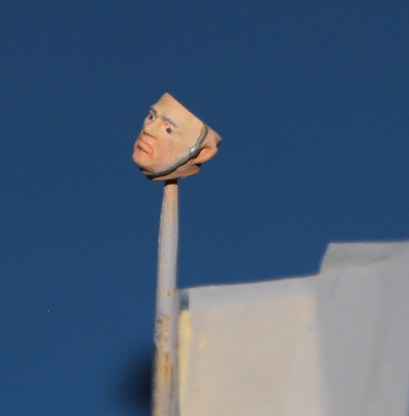 Знаю, что "рисовать" лицо в миниатюре сложно. Сам жду вдохновения, чтобы заняться загрунтованными фигурами. Но глаза выходят крупновато. Уменьшить бы их. я последний раз "делал" зрачки кончиком зубочистки.