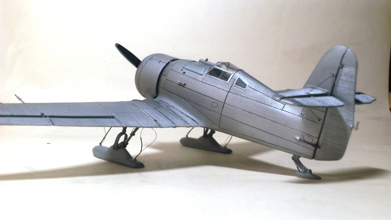 Почему выбрал именно первый прототип, а не И-14? По двум причинам; на мой взгляд самолёт и так не красавчик, а с такими шасси как на И-14 совсем уродец, но это на мой вкус, а вот с первым вариантом шасси да на лыжах совсем другое дело, намного солиднее. Вторая причина попробовать более масштабную работу с гофром.