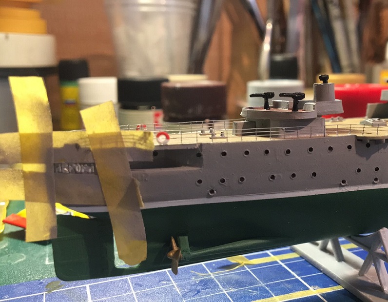 @Константин, ну просто других у меня нет, нет их так же в свободной продаже и в моем селе. Прикинул фактически к пароходу, вроде неплохо. В размере 1/400 или 1/350 великоваты были бы на мой взгляд. Кстати винты тоже немного обточил и воткнул на место. Пытался сухой кистью выделить название парохода на корме, в итоге залил все краской, пришлось закрашивать в базовый цвет, далее планирую выделить золотым маркером.
