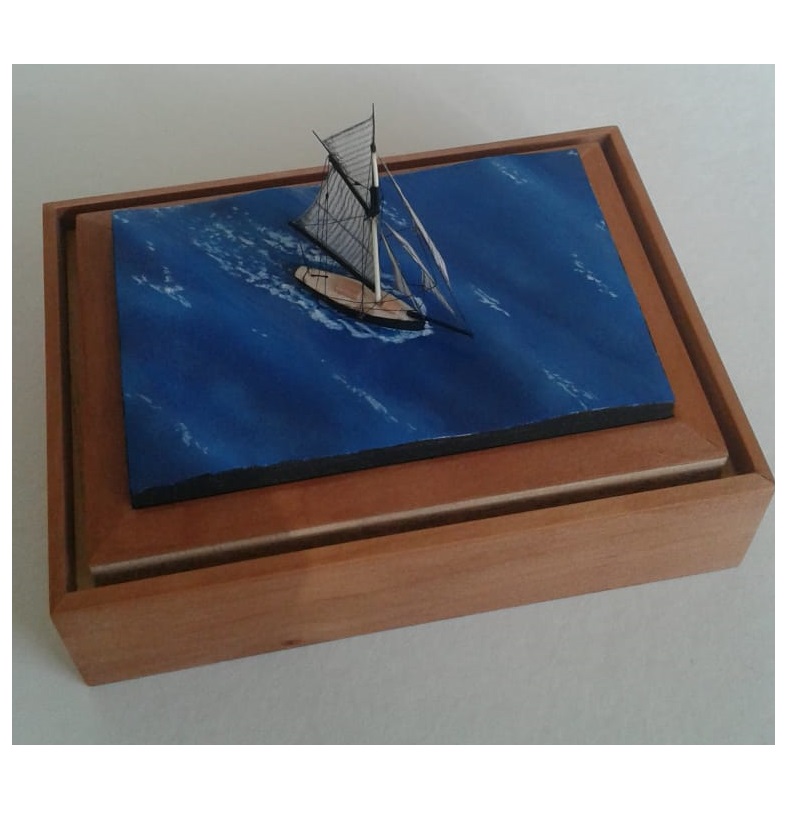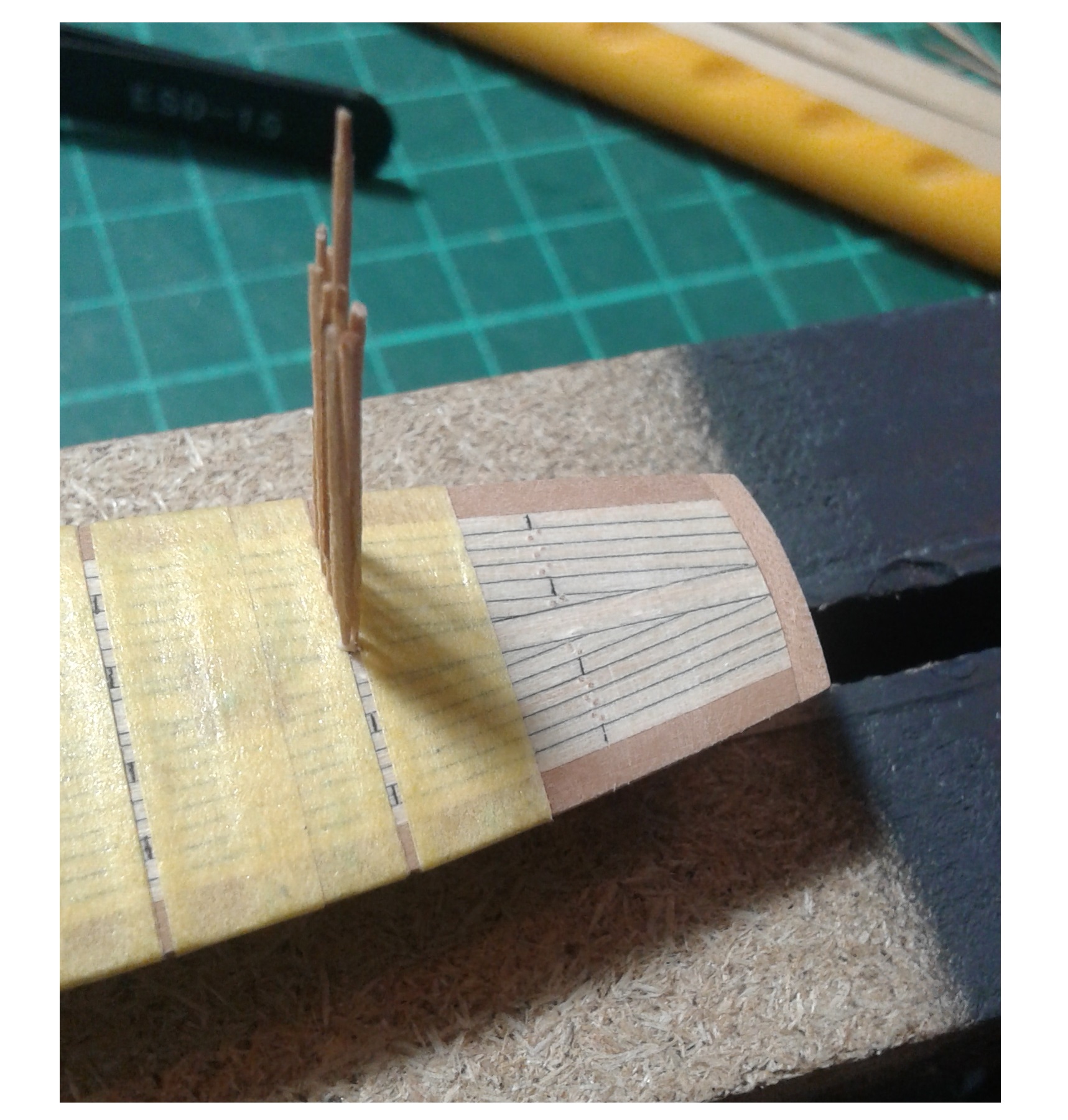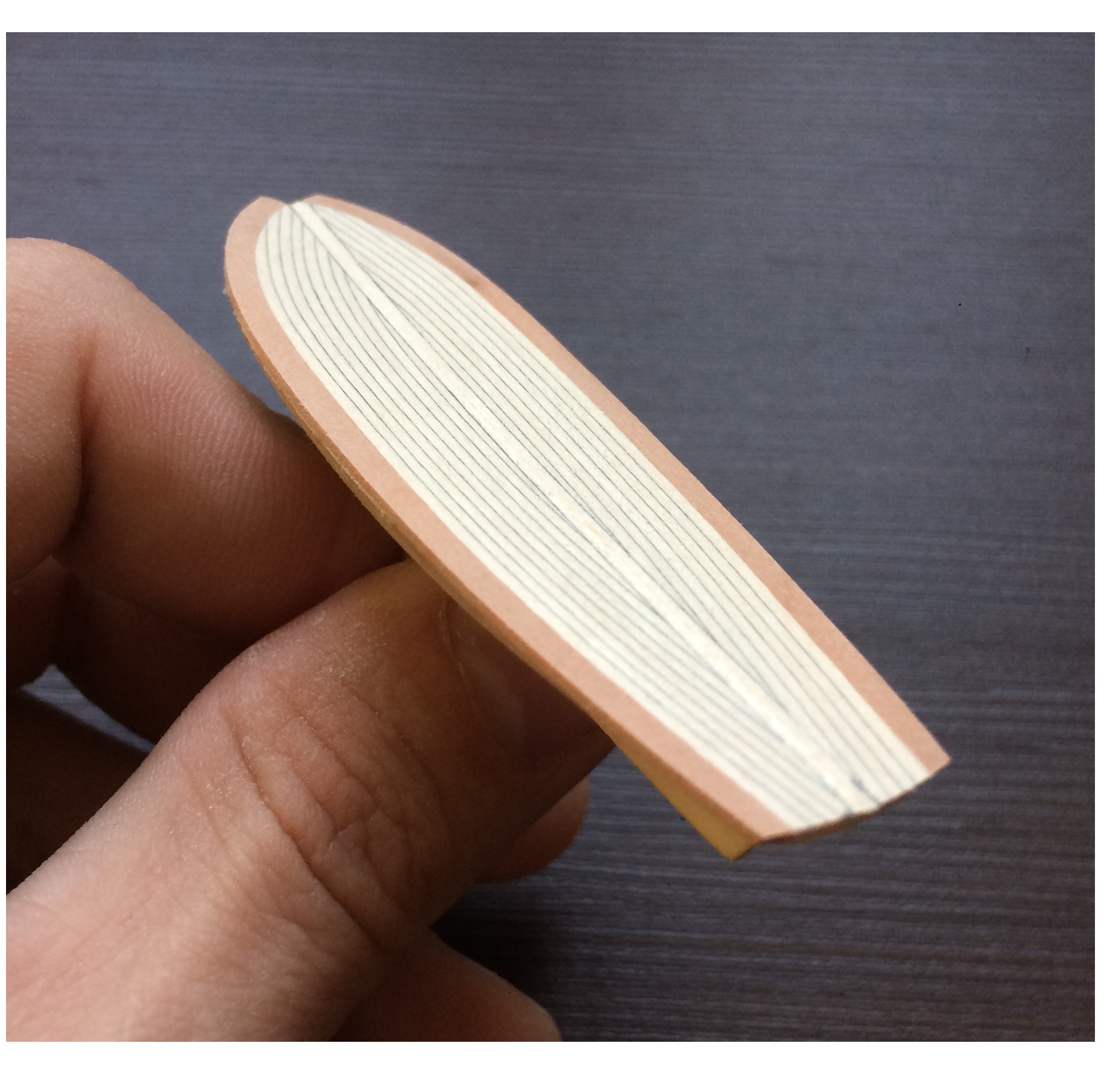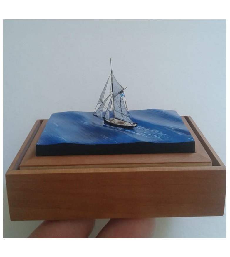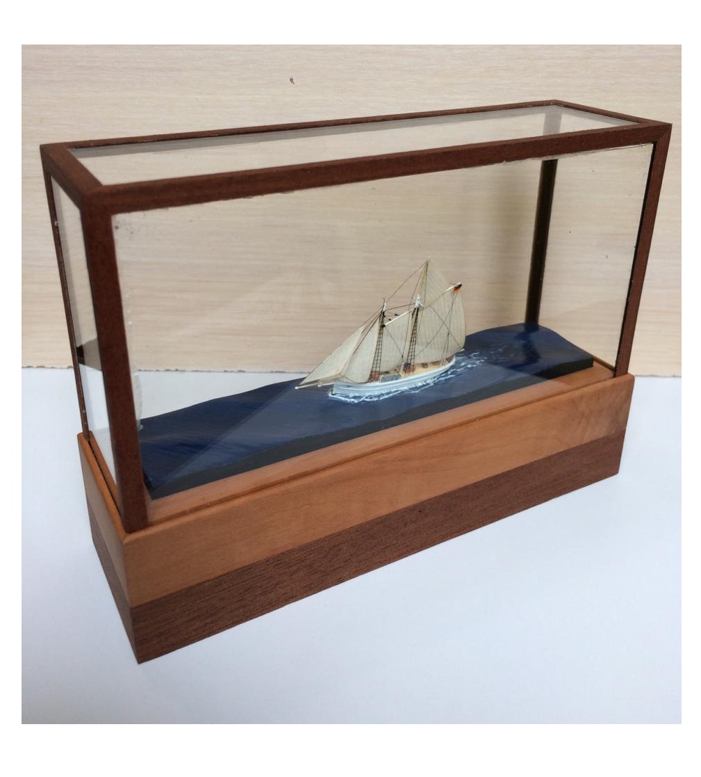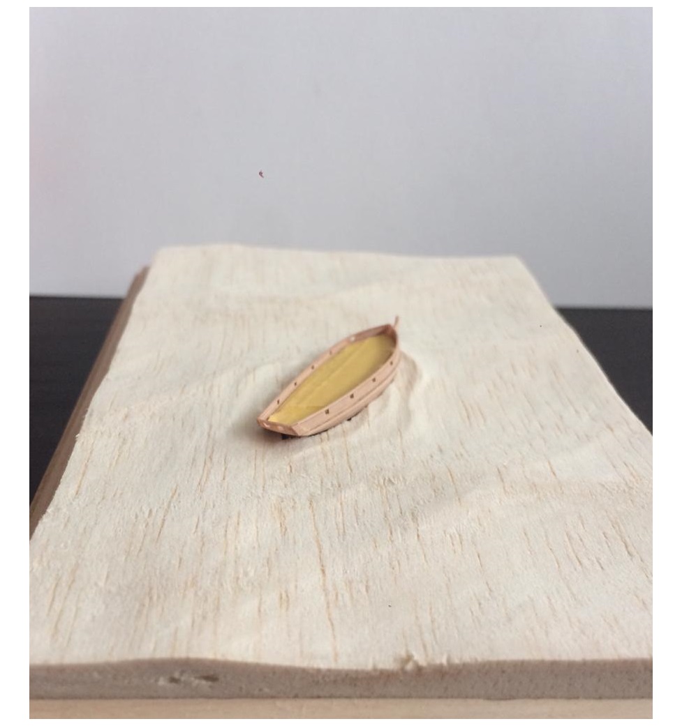 Масштаб 1:192. Судно довольно маленькое, порядка 15 метров. Длинна по палубе около 7,5 см. Черновой корпус из липы, палуба наборная - светлый граб и розовая груша. Доски шириной 1мм, гнул в кондукторе по линии борта и собирал в пакет отдельно правую и левую по диаметральной плоскости, далее все на черновой корпус. Ватервейсы из розовой груши, тоже цельногнутые, распаривал и гнул поэтапно до получения необходимого изгиба. Конопатка между досок - тонкая черная бумага. После сборки палубе придал погиб и подправил седловатость, отцикливал.