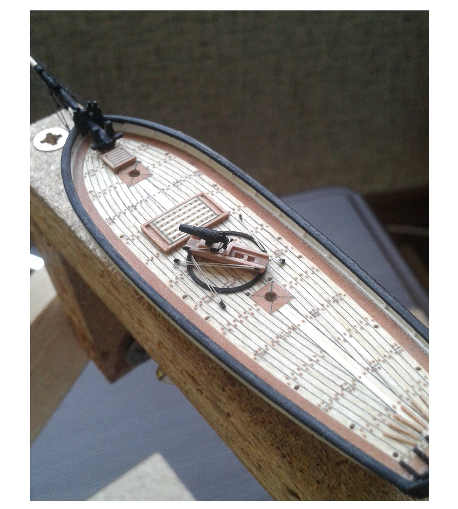 Нет без микроскопа))) Инструменты самые простые. Но рука нужна твердая и глаз точный) Иногда при монтаже такелажа бывает, что глаза не могут адекватно воспринимать мелочь)) Дыхание задерживаешь, да и локтям нужна твердая опора - на весу нереально. А сколько мелких элементов улетело благополучно с пинцета или стола в неизвестность)) самое обидное) приходится полчаса лазить под столом как на минном поле, что бы не раздавить или не за пнуть еще дальше, посыпая голову пеплом. И не найдя в досаде опять начинать этот же элемент заново. Но зато опыт) В целом развлечений много с миниатюрами)