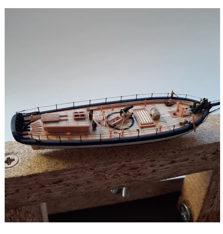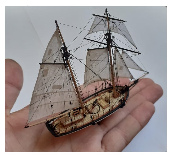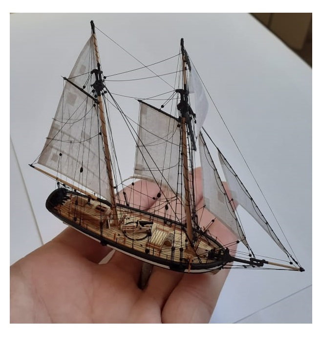 Подводная часть имитирована только двумя рядами обшивки - шхуна будет в море.