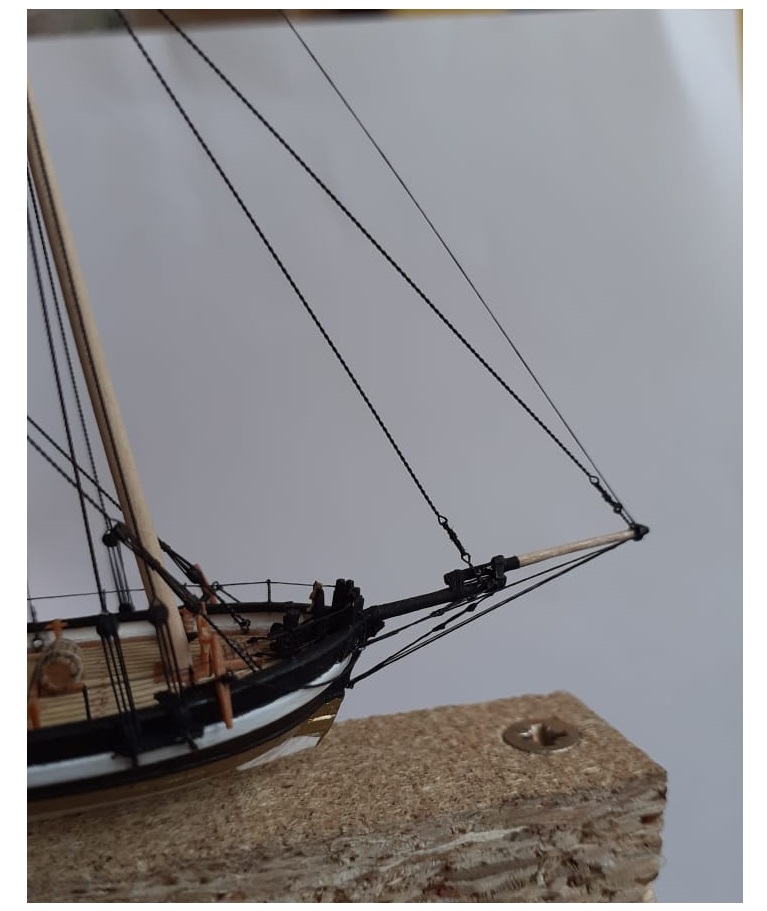Такелаж стоячий. Проволока медная и нитки Гутерман скала 360. Окрашены черным акрилом от тамии.