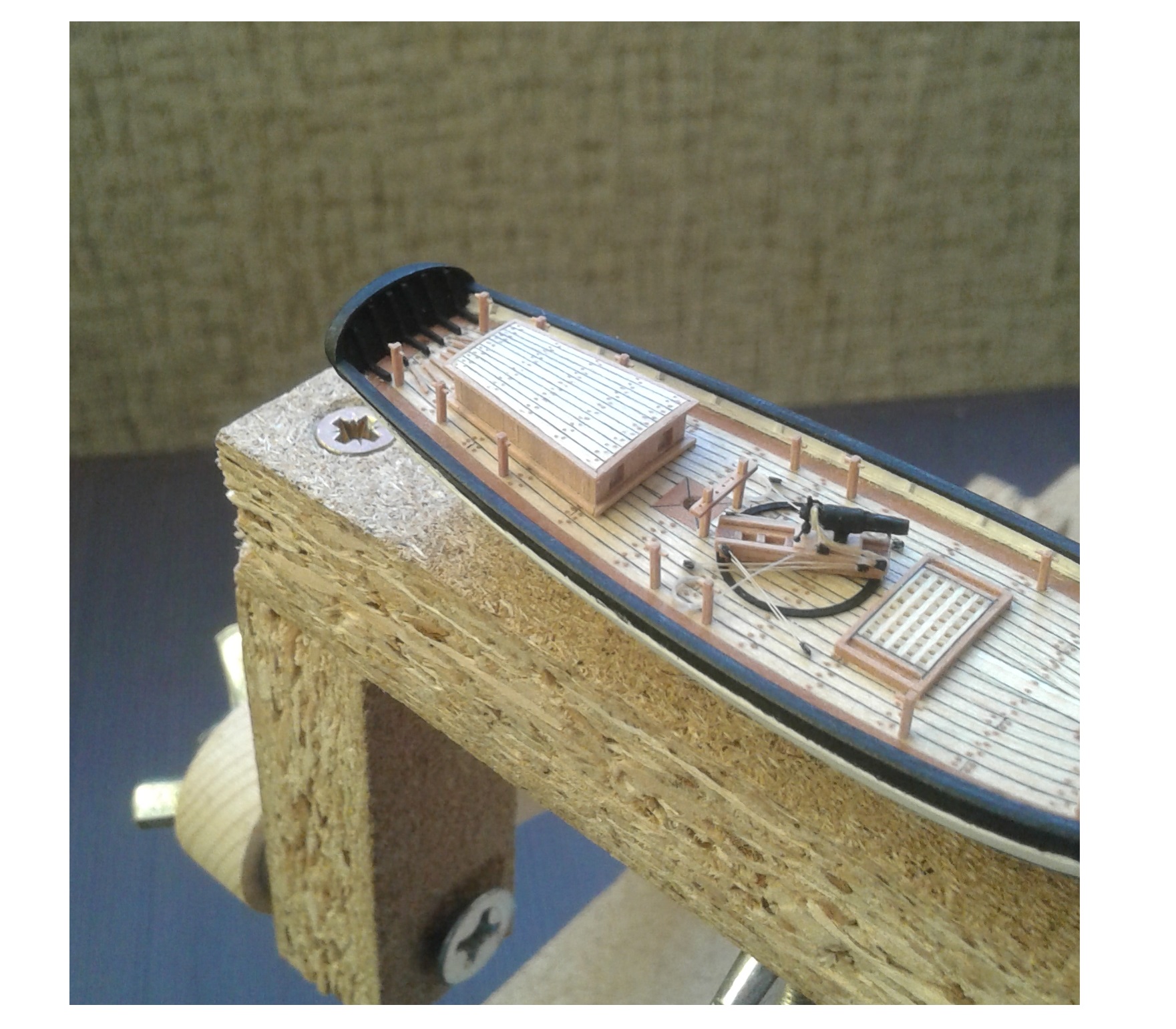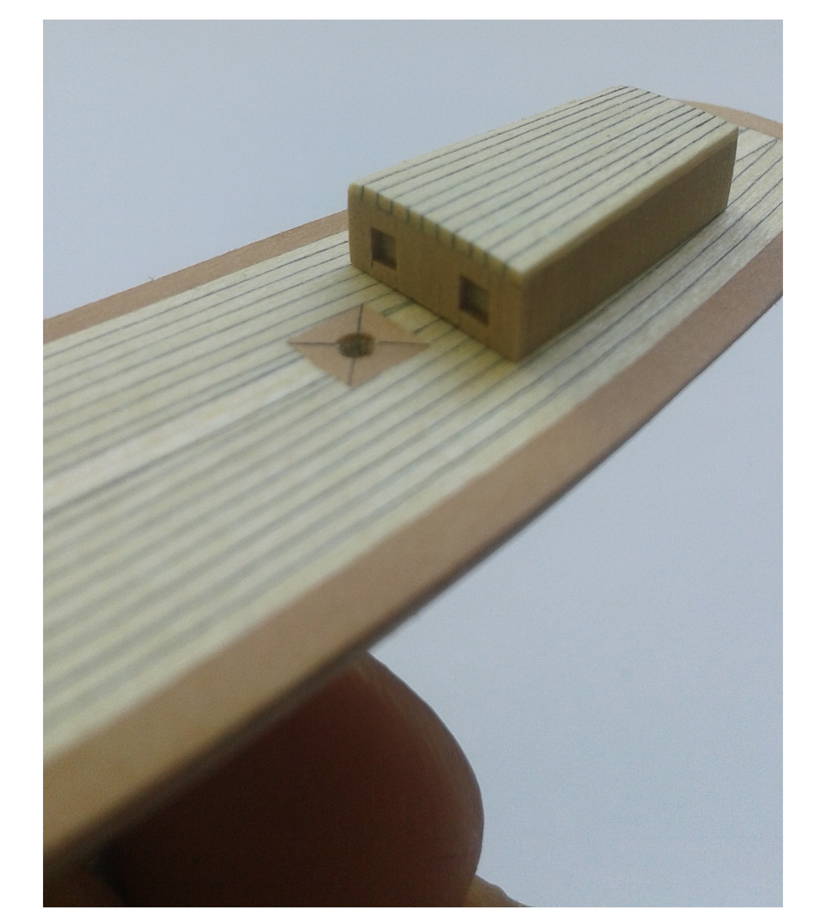 Настил надстройки наборный, по той же технологии что и палуба. Обшивка стенок также наборная из груши. Битенги - груша.
