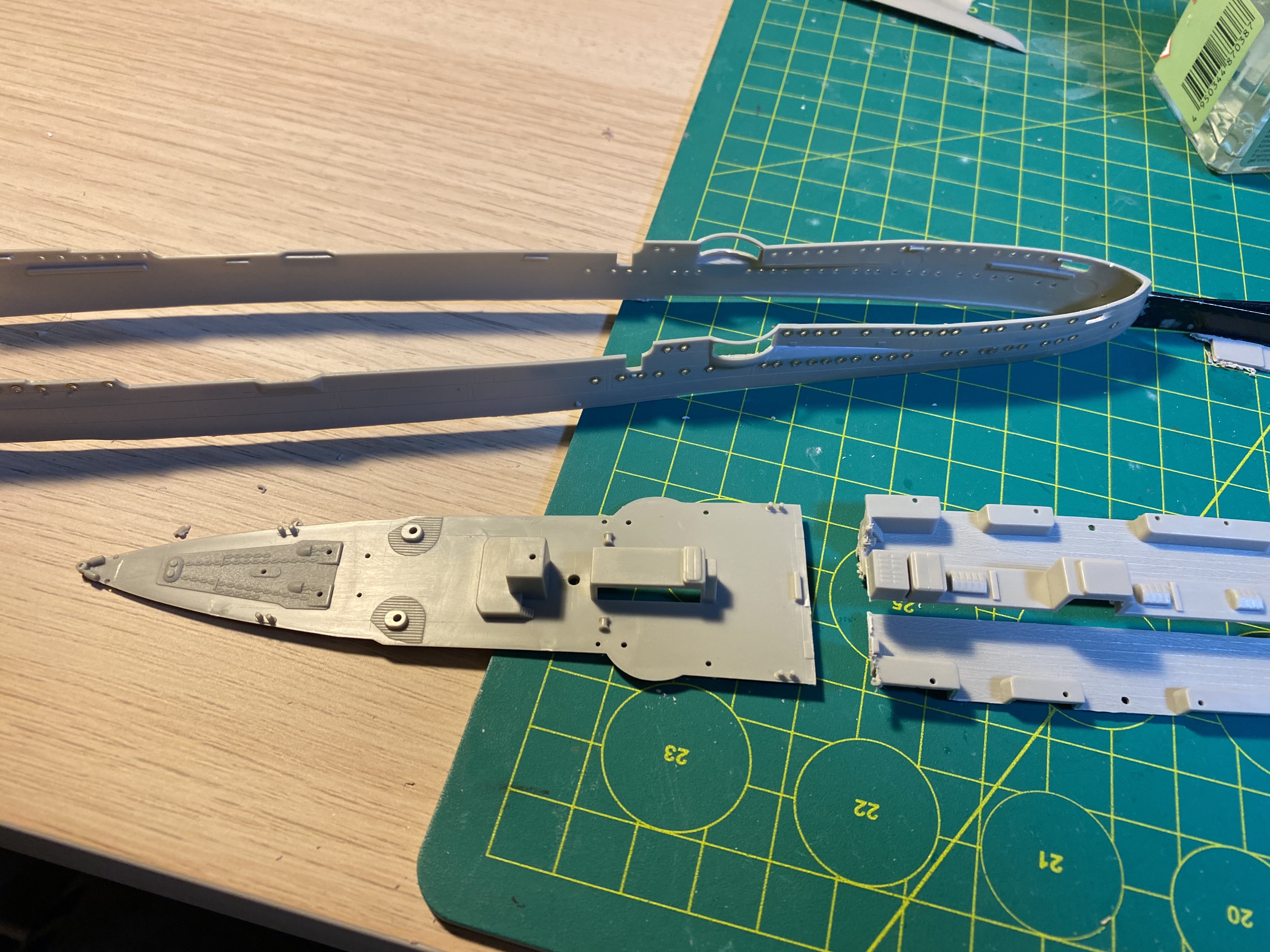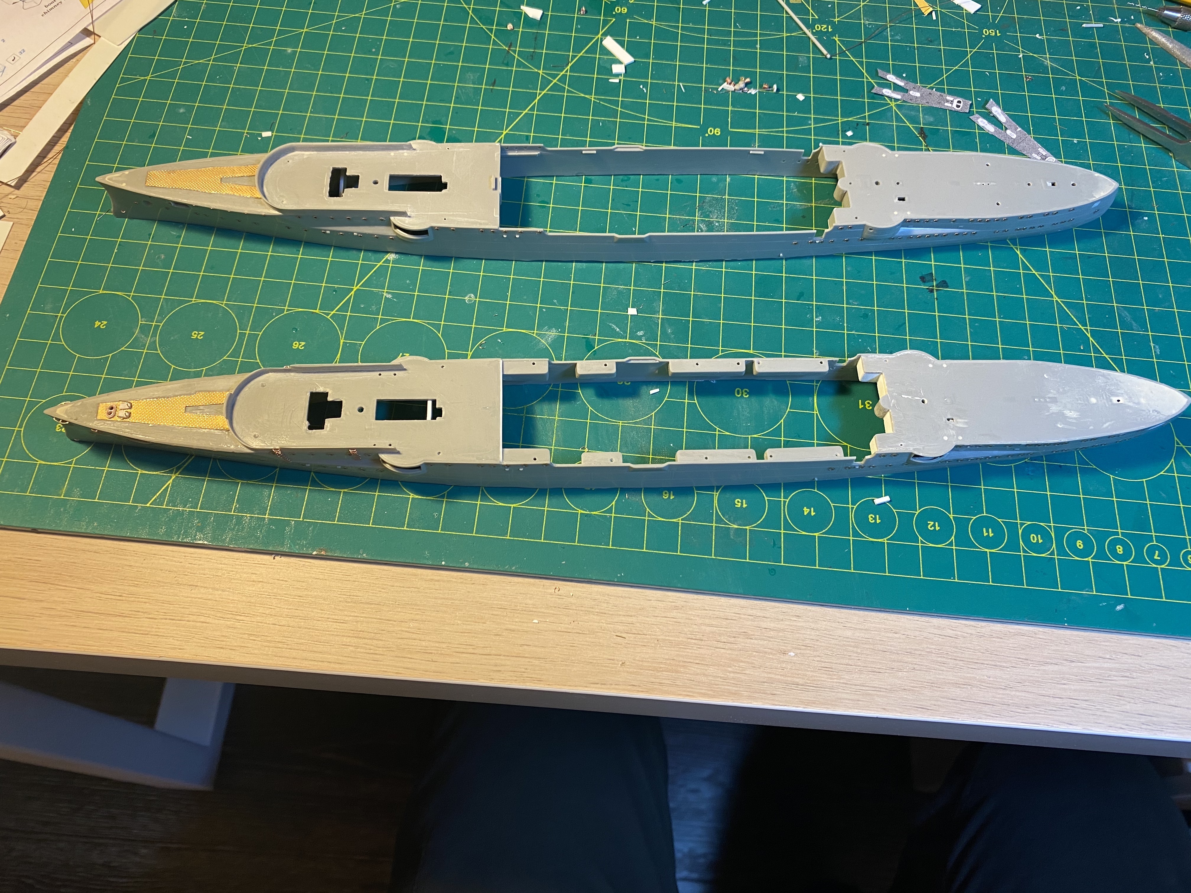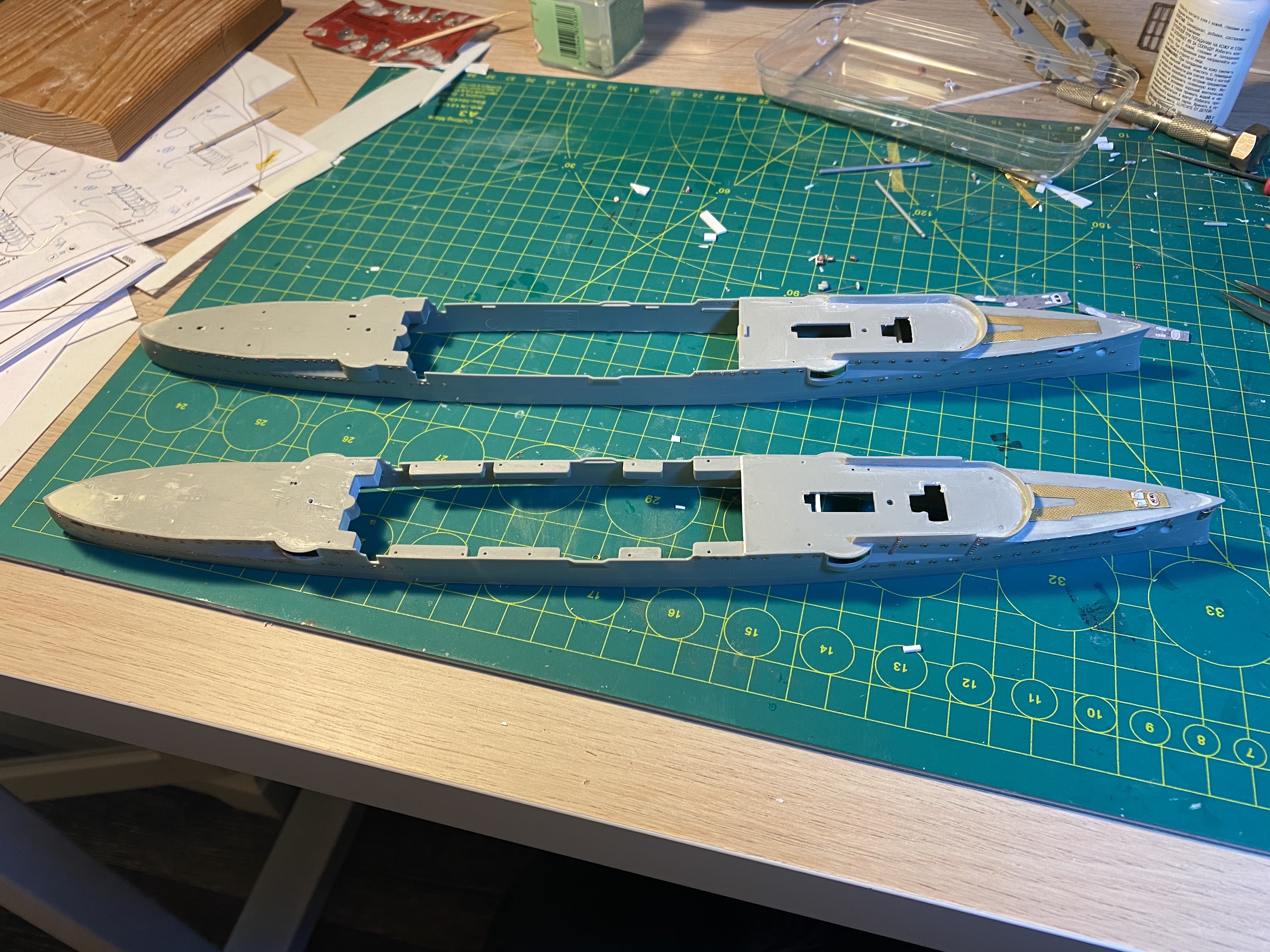 Срезал днище на обеих корабликах, отрезал полубак и ют. С палуб срезал все...