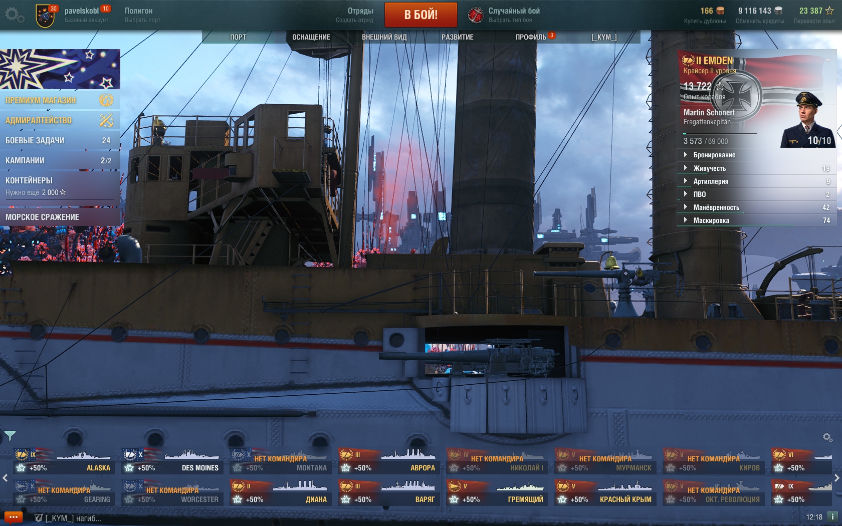 Скорее всего мирным, чистеньким будет Дрезден, с закрытыми казематами, серым Эмден, с открытыми казематами, в боевом положении.