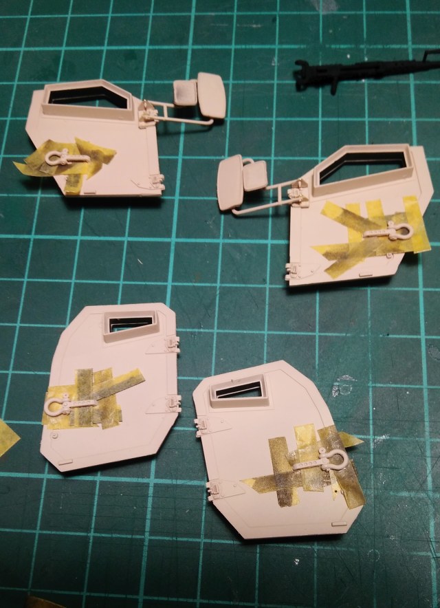 Сегодня немного сделано, весь день в разъездах... Скрестил раму с кабиной, вклеил карты дверей. ручки и рамы бронестекол.