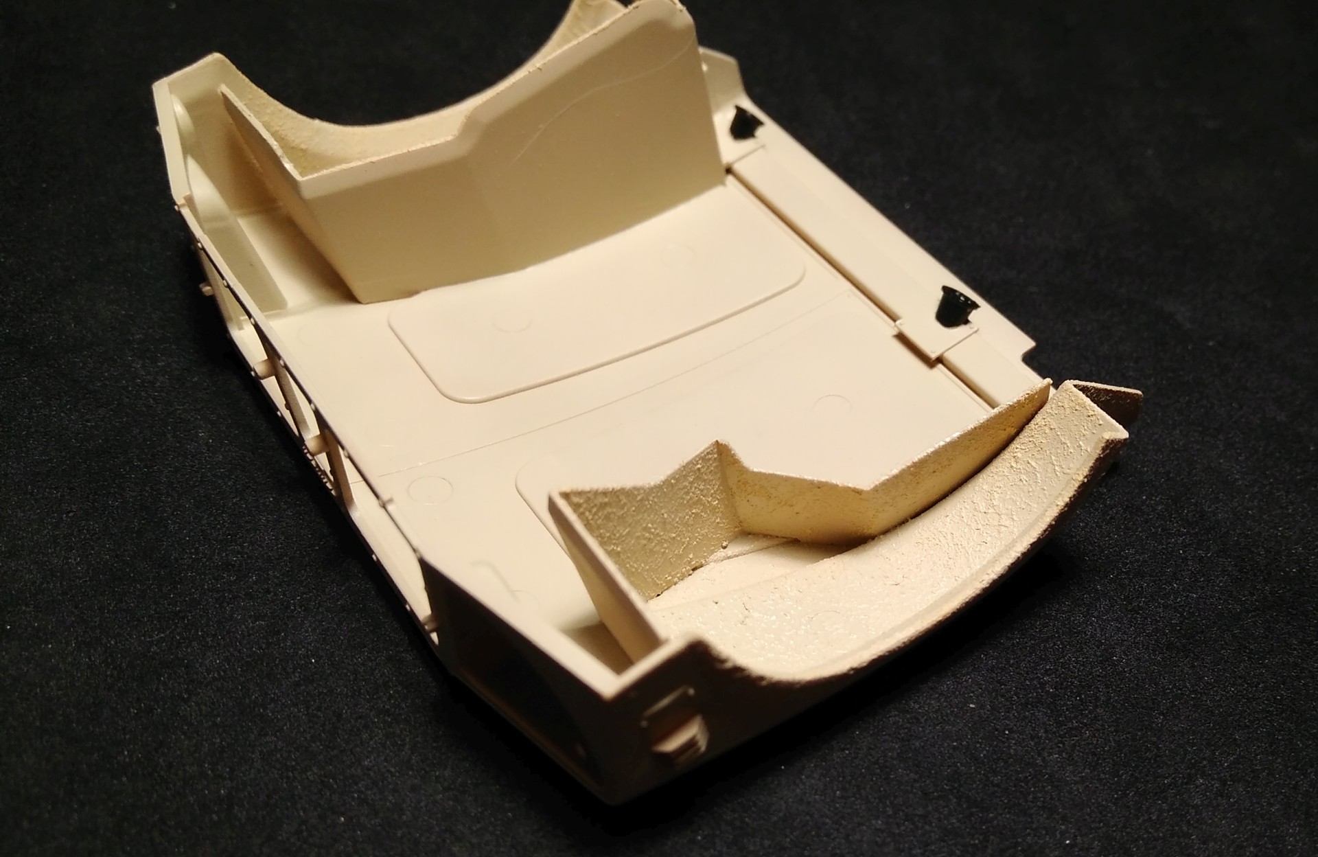Ну и до кучи приклеиваем задние крылья с полом "багажного" отделения: