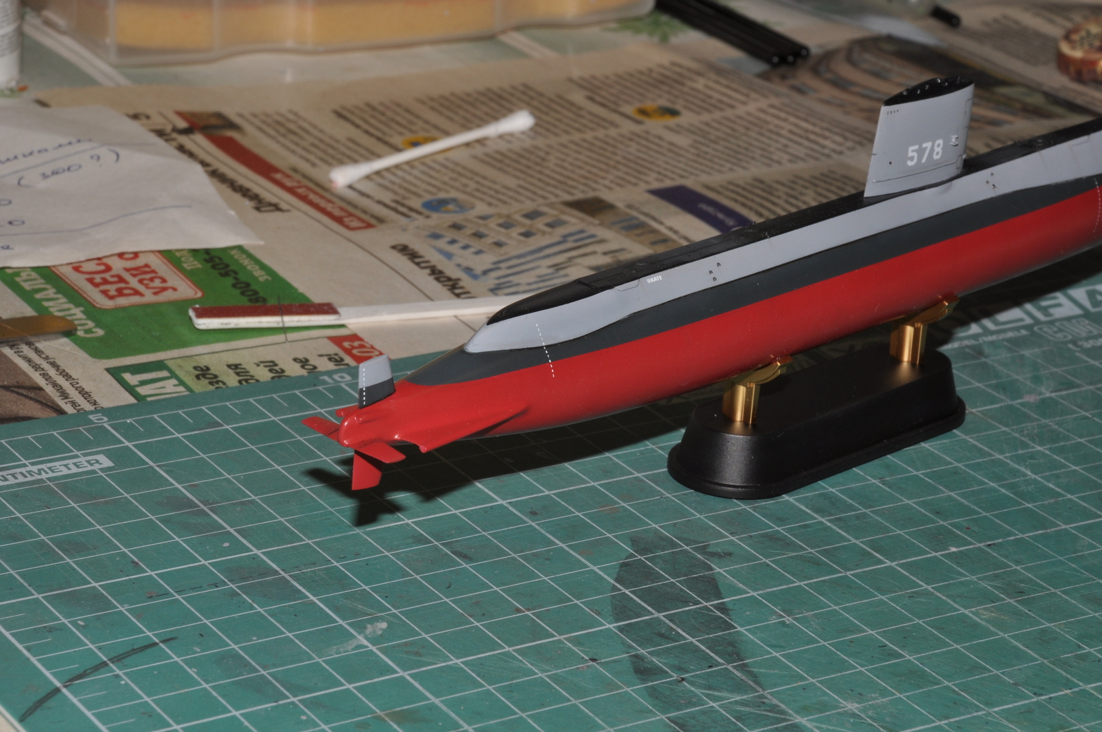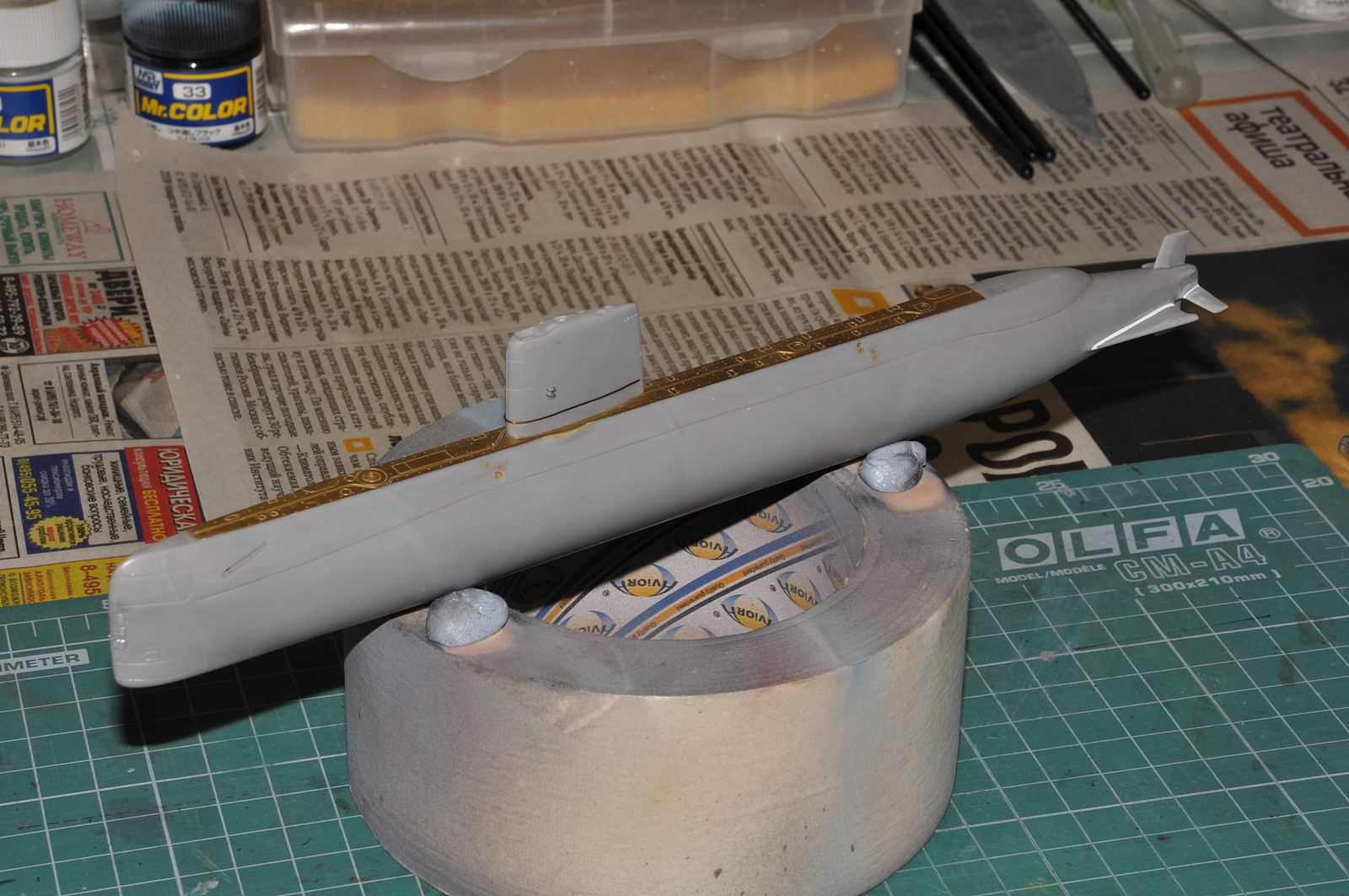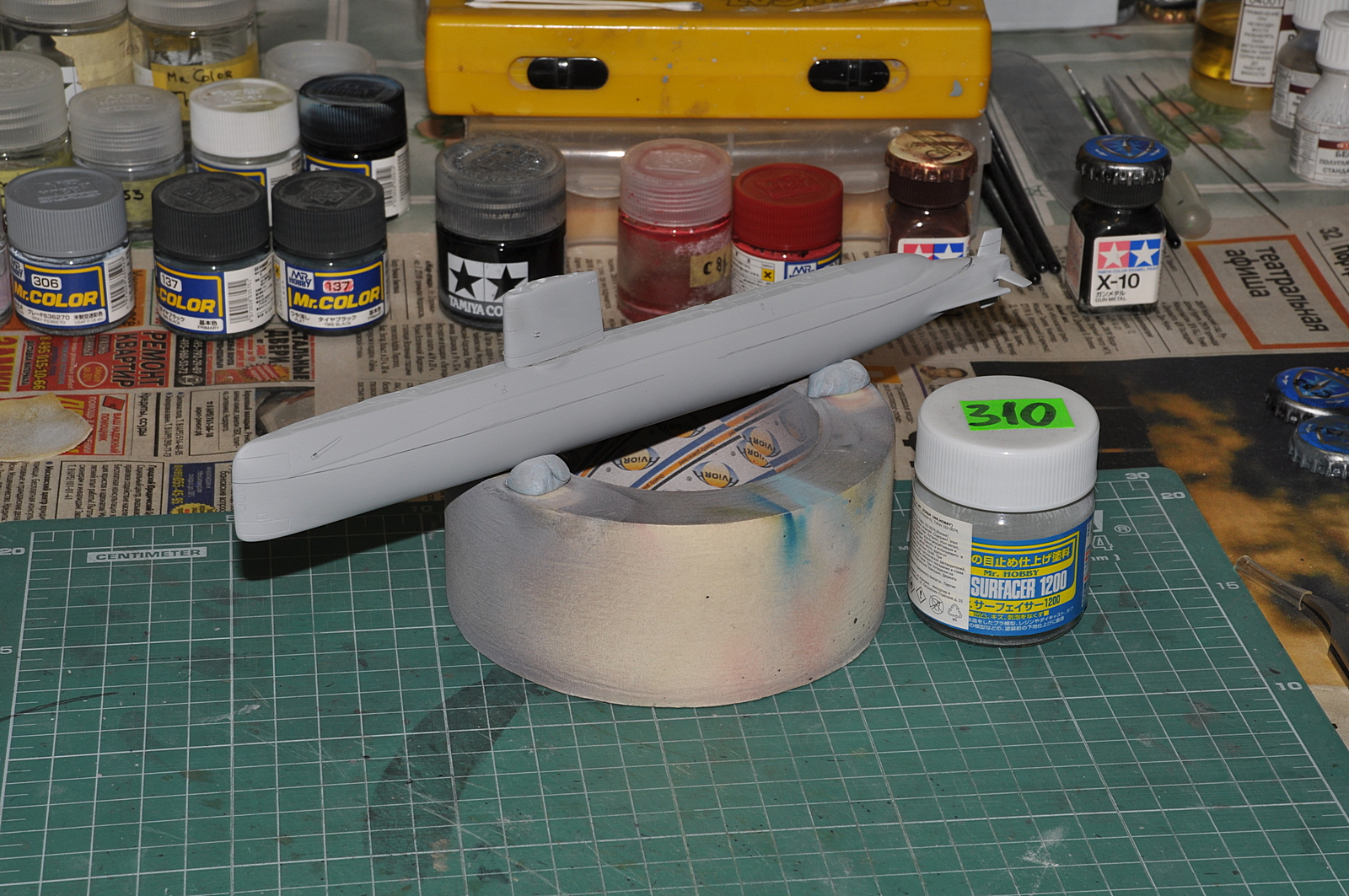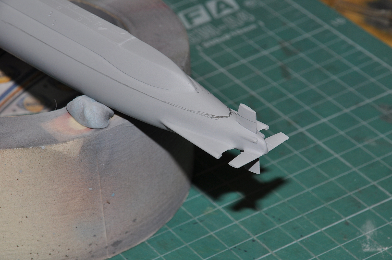 Итак, продолжаю. Победил таки узел соединения обтекателей гребных винтов с корпусом. Все вывел, щелей нет. Загрунтовал