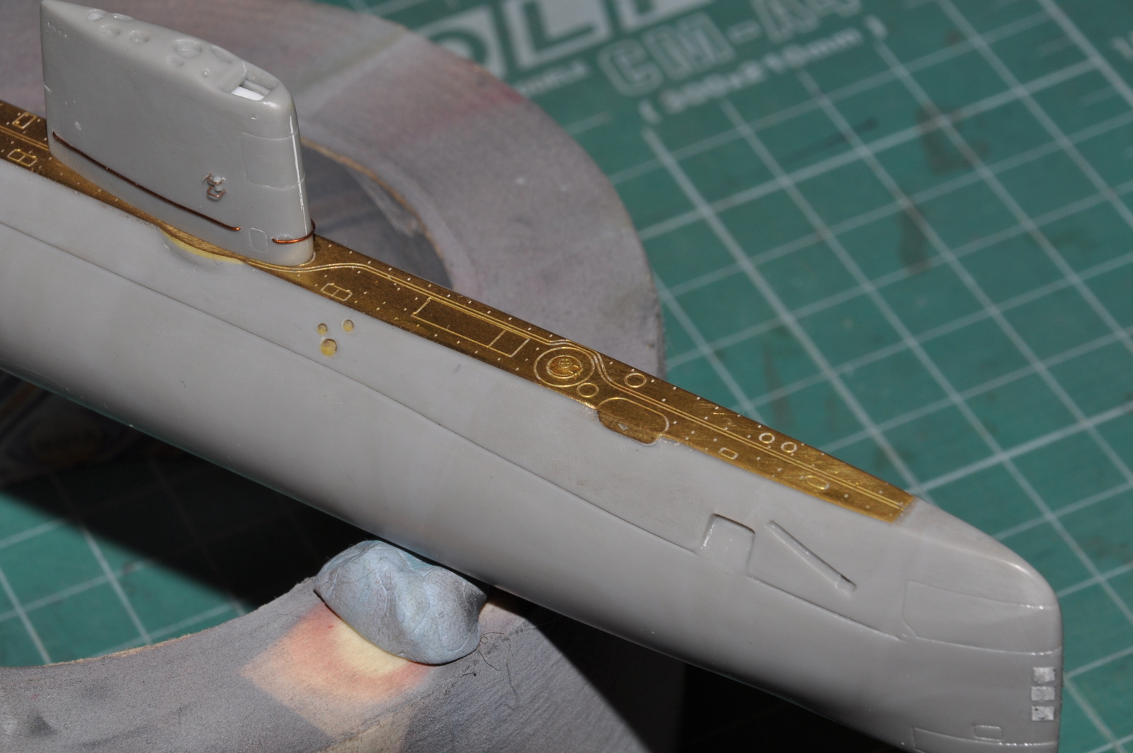 Приветствую, Павел. Да у этой лодки тоже травленая палуба. Вот, собственно, ее и смонтировал на свое место. Выявил и косяк Микромира - в районе рубки полукруглые выступы травленой палубы меньше таких же выступов на корпусе. Пришлось наращивать из двухкомпонентной шпаклевки.