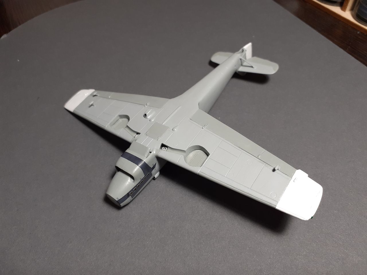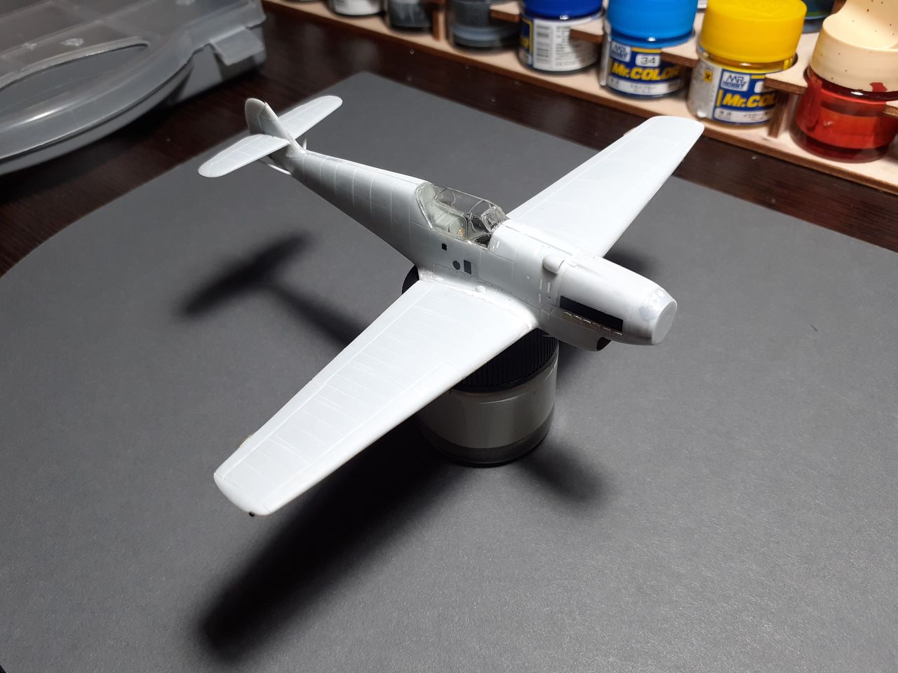 Дошпаклевал и дошлифовал. Доработал детализацию, вклеил фонарь, подготовил к окраске.