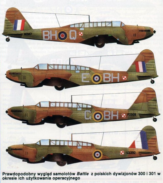 С апреля 1940-го в Великобритании начали формировать авиационные части из польских эмигрантов. Четыре бомбардировочные эскадрильи получили в качестве первого оснащения "Бэттлы". Две из них, 300-я и 301 -я, в течение полутора месяцев принимали участие в налетах на побережье Ла-Манша. Две другие, 304 и 305, использовали эти бомбардировщики только для учебных целей. К декабрю 1940 г. все они приступили к перевооружению на более современную технику.