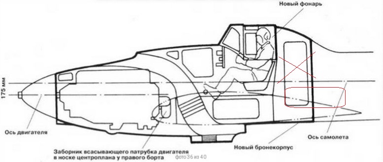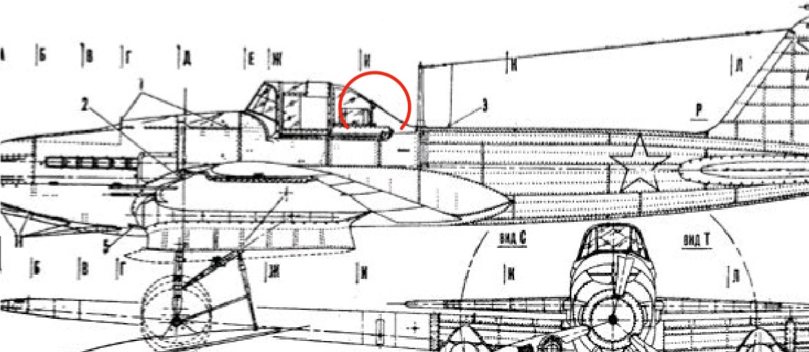 Кстати, если наложите фото на условную компоновку, то видно, что бак как раз находится в на уровне направляющих сдвижной части фонаря. А сфера установки размещена как раз за ним.