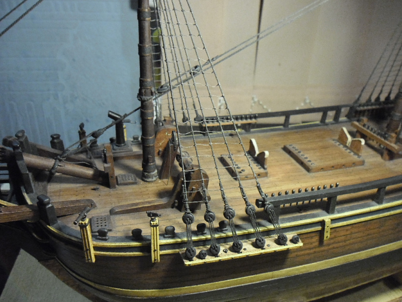 @Вячеслав Строев написал:Здравствуйте Александр. Элементы палубы, такие как ватервейсы, шпилевые и мачтовые пяртнерсы, усиленные доски вдоль края люка делались из более толстых и твердых досок поэтому они выделяются цветом