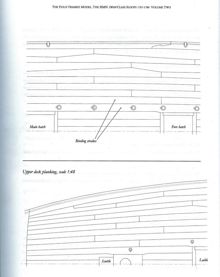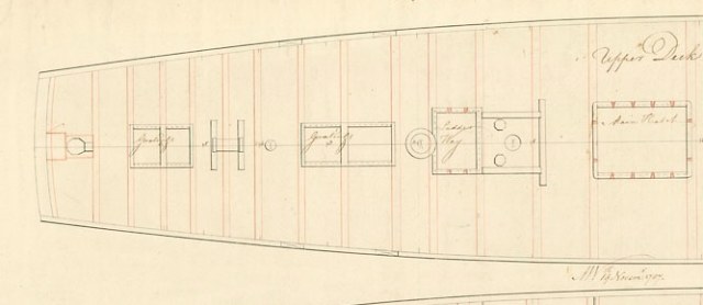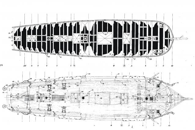 Ещё деталь. Пространство между поясьями в середине, то есть, между люками, комингсами и прочим, заполнялось досками большей ширины, чем остальные доски палубного настила, обратите внимание.
