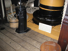 или кофель нагелей (забыл как называется, битенг?)у нактоуза не было, другого места им просто нет, и может для этого на вантах были утки? Видел на сиднеевской реплики, там и ворст есть, но не на привычном месте а выше...
