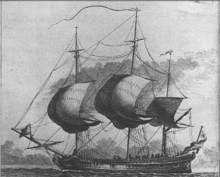 На фото. Шлюп шестого ранга с дрифтом на квартердеке: